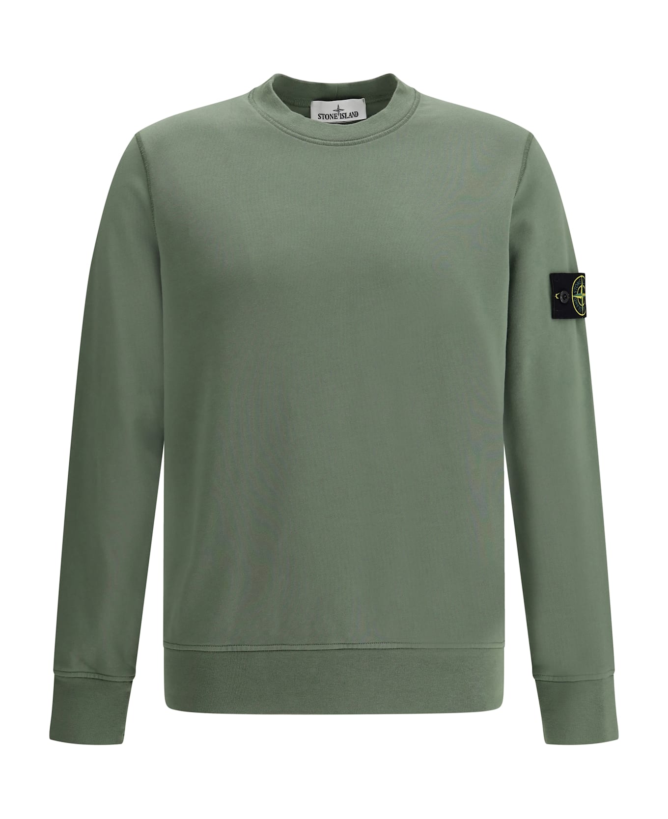 Stone island's cotton logo sweatshirt is a functional and stylish piece. ribbed cuffs and hem ensure a perfect fit and a good fit. the iconic monogram patch applied on the left sleeve is a distinctive detail that underscores the brand's quality and authenticity. a great choice for those looking for a sporty yet sophisticated look without sacrificing comfort.