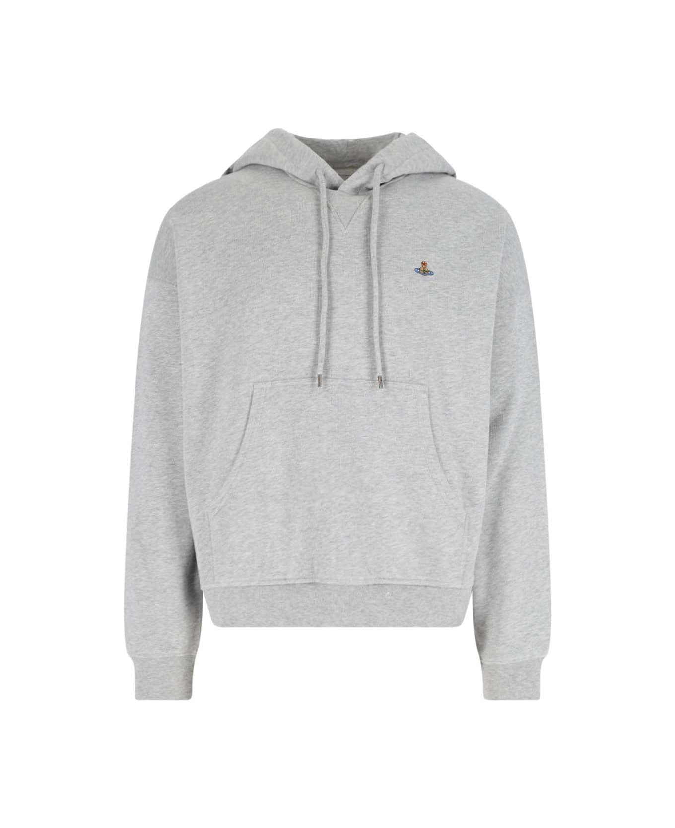 Vivienne Westwood 'Orb' hoodie in grey cotton with drawstring hood, multicolor logo embroidery on the chest, maxi front pocket, ribbed trims, straight hem. Composition: 100% Cotton