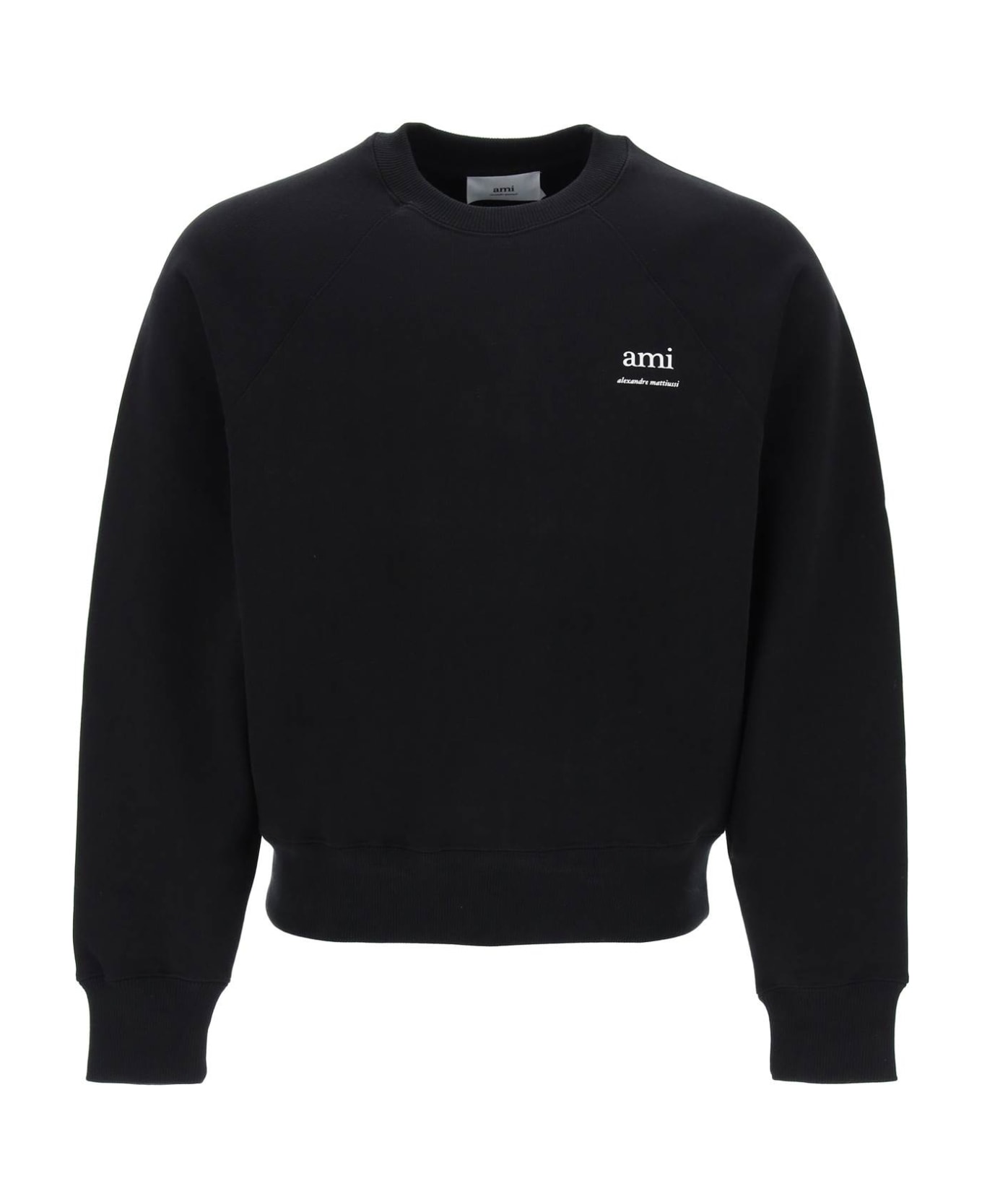 The Ami Paris crewneck sweatshirt is made of organic cotton jersey and features an oversized fit and a contrasting lettering logo printed on the chest. The ribbed edges and raglan sleeves add to its stylish design. The model is 187 cm tall and wears size M, while the female model is 177 cm tall and wears size S. Composition: 100% ORG CO