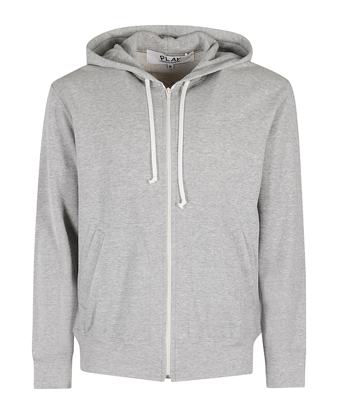 Red Heart Hoodie Sweatshirt - Comme de Garcon Play - gray color - hood with drawstring - front zipper closure - long sleeves - side pockets - elastic bottom and cuffs - logo applied on chest