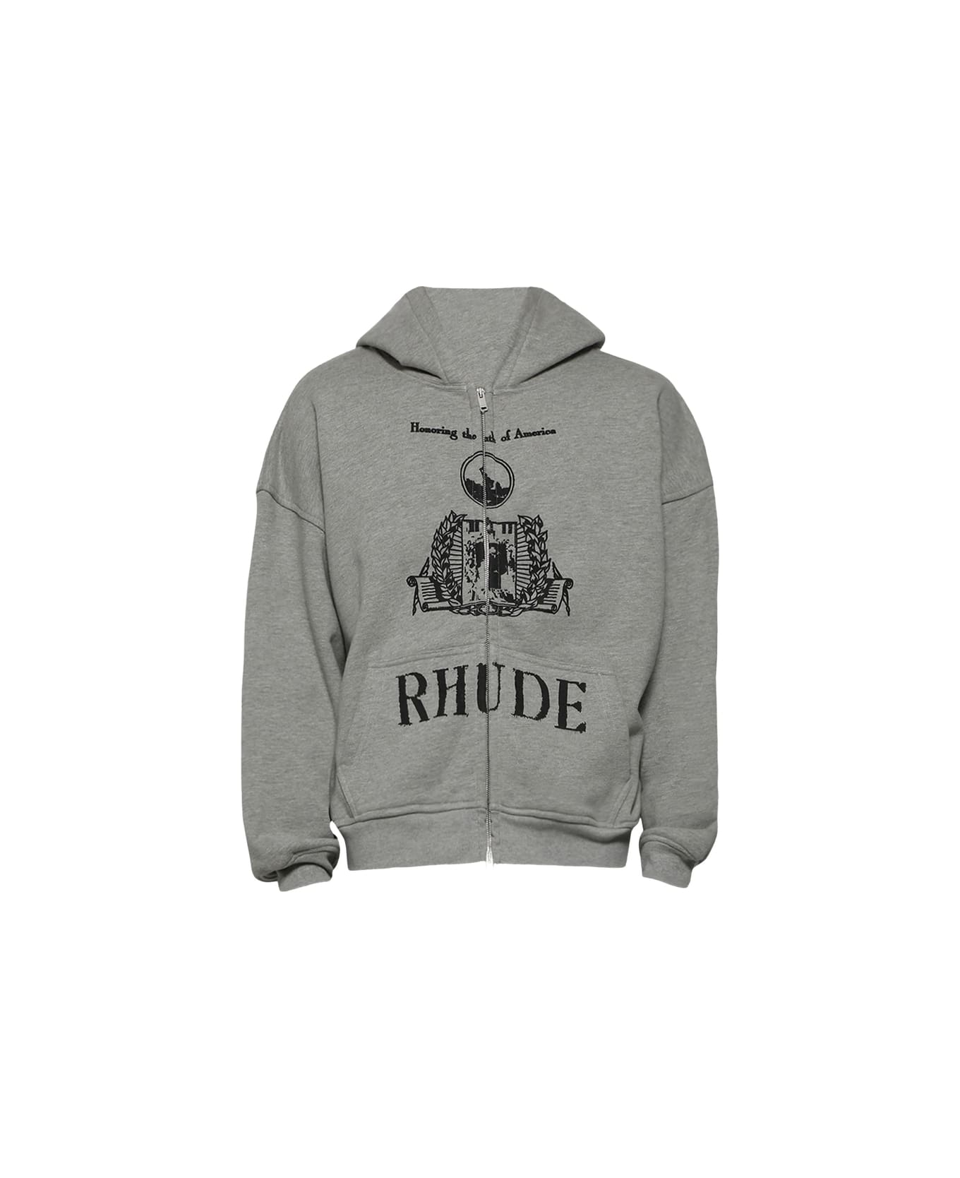 heather grey graphic print logo print zip fastening fixed hood long sleeves side pouch pockets