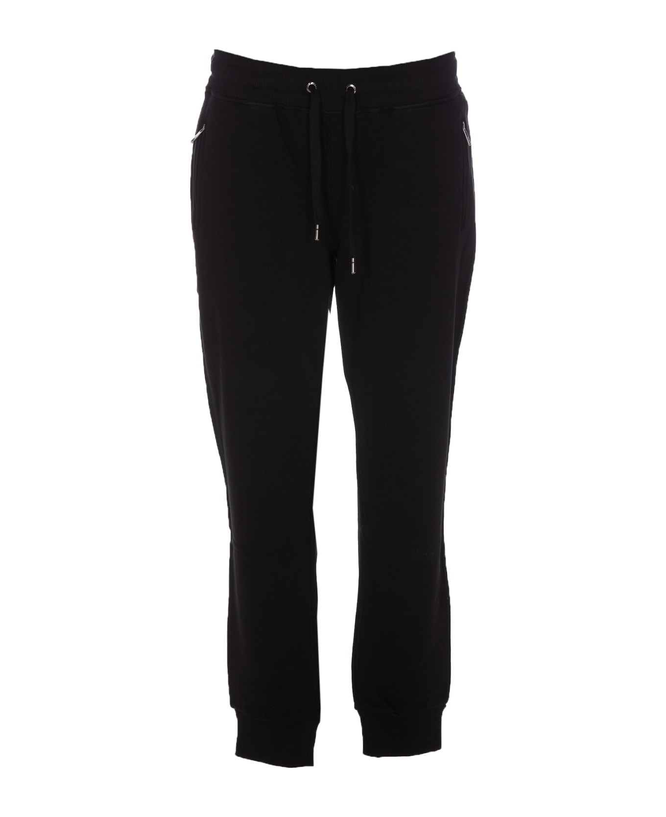 Docle&Gabbana, black logo plaque jogging pants, elasticized on waist with coulisse closure, lateral pockets, pockets, cuffs at bottom , pockets with zip closure on the back, back plaque logo Composition: 97% Cotton, 3% Elastane