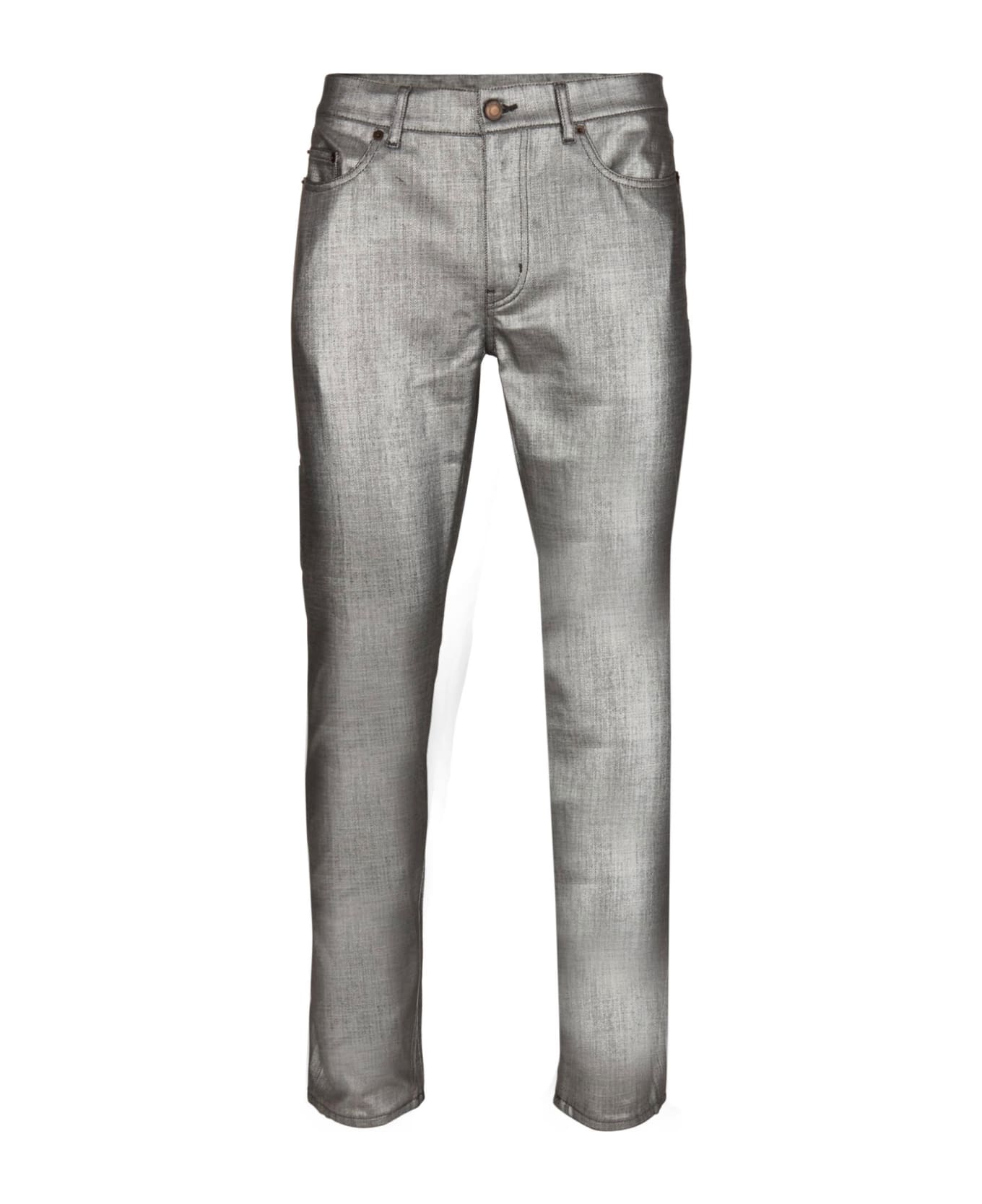 Silver laminated jeans in cotton, skinny and cropped fit, button and zip closure, 5 pockets