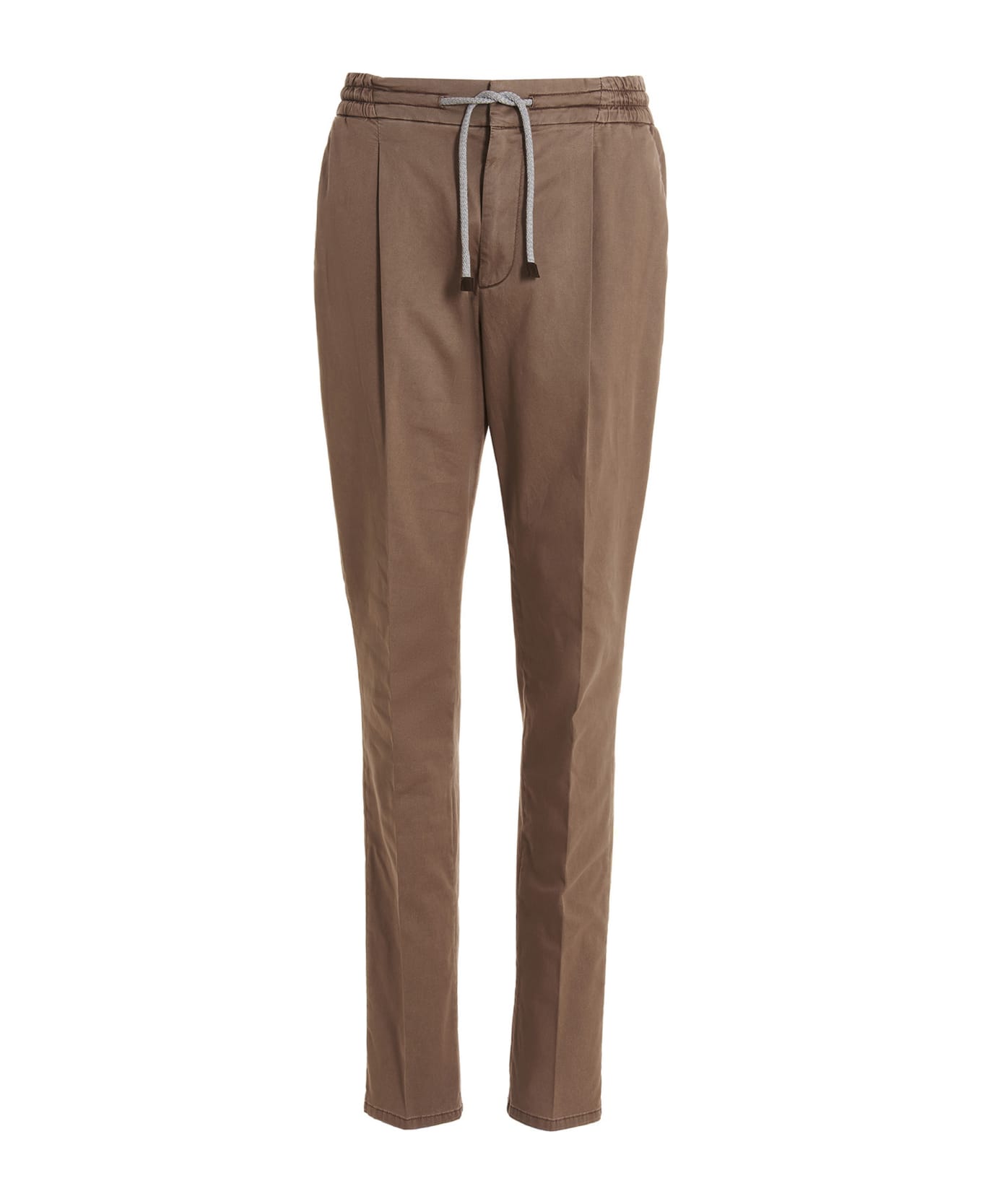 Cotton gabardine pants featuring drawstring at the waist with an elastic at the back.