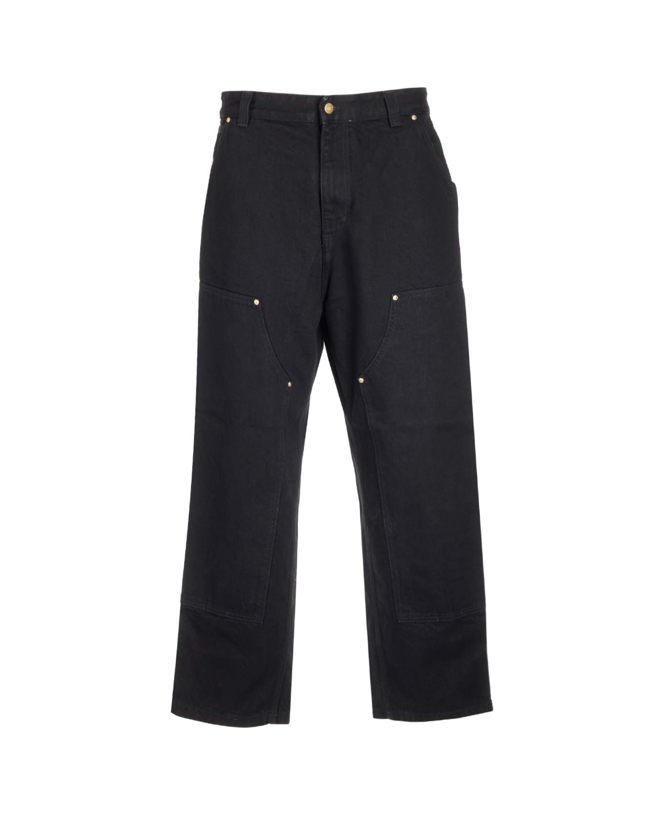 "Nash DK" black jeans from Carhartt Wip in cotton deinm with baggy fit, medium waist, reinforced knees, carpenter-style pockets, concealed zip and button closure, heart-shaped label. Composition: 100% COTTON