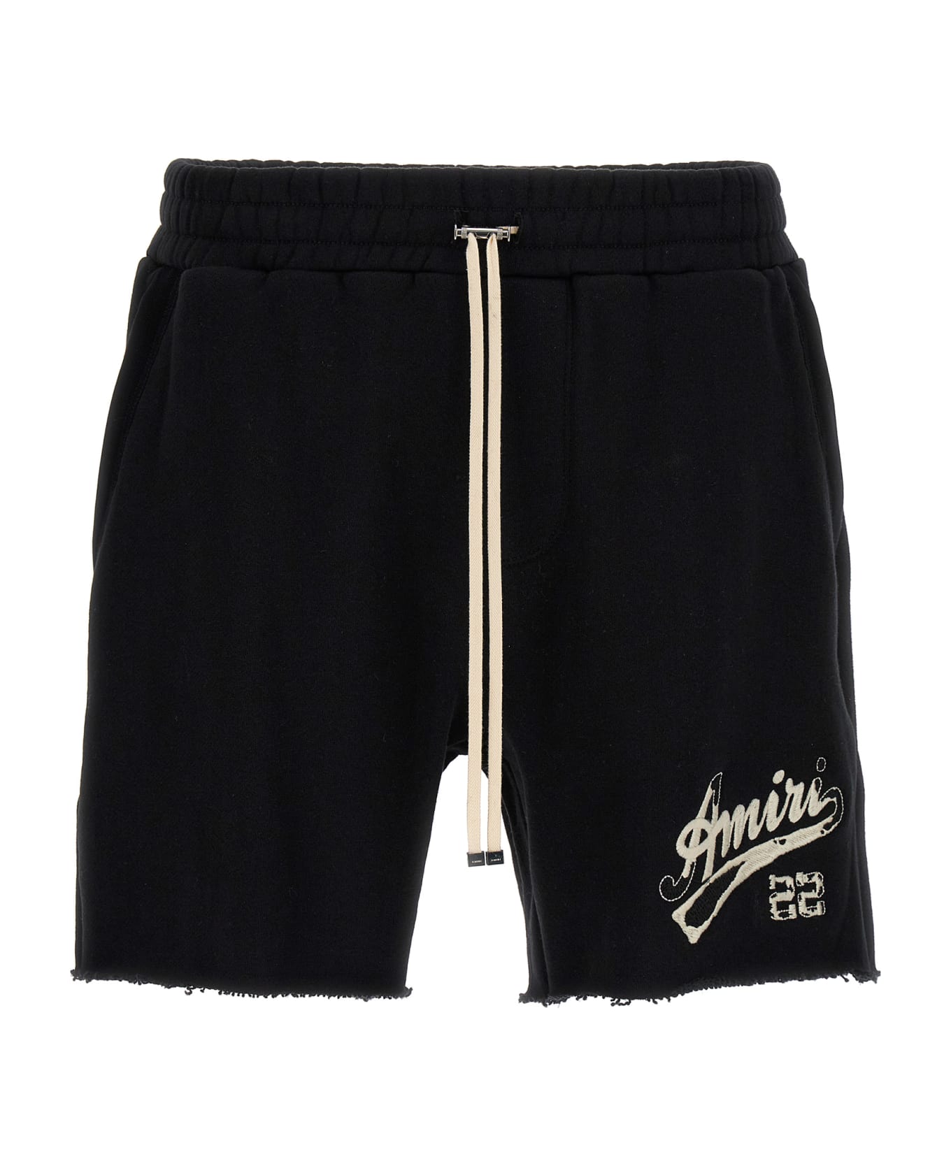 'Amiri 22' cotton bermuda shorts with front logo embroidery, an elastic and drawstring at the waist, pockets and a raw cut hem.