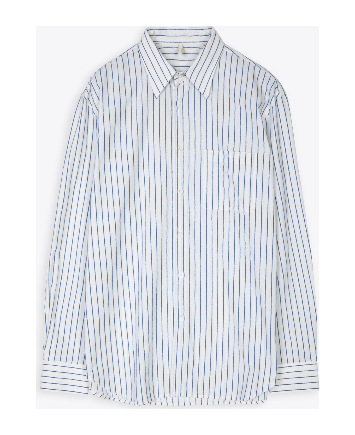 Off white and blue pinstripe cotton shirt with long sleeves. Mother-of-pearl button fastening. Chest pocket. Regular fit. Composition: 100% cotton. Made in Romania.