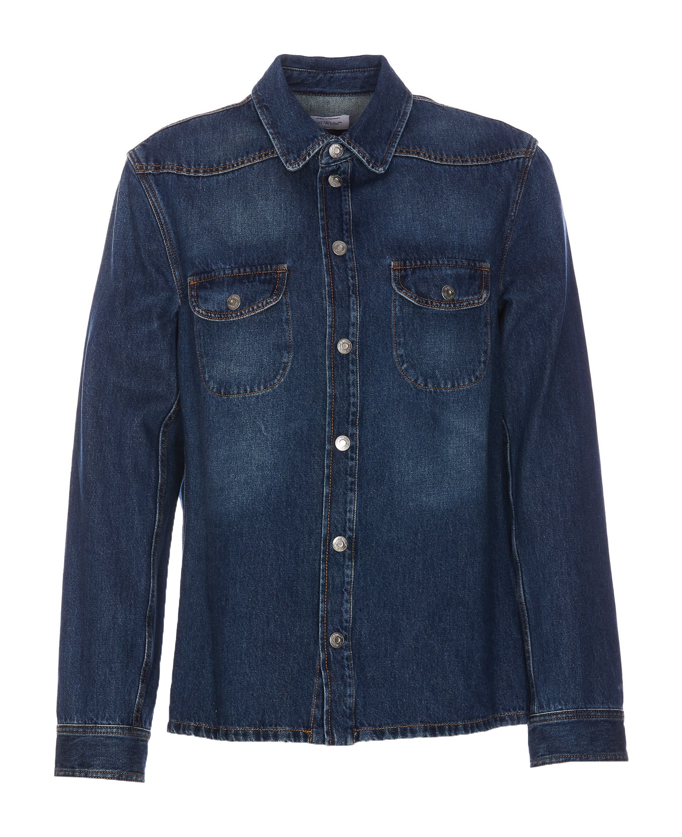 Off White denim shirt with frotal buttons closure, regular collar, embroidered logo on the back Composition: 100% Cotton