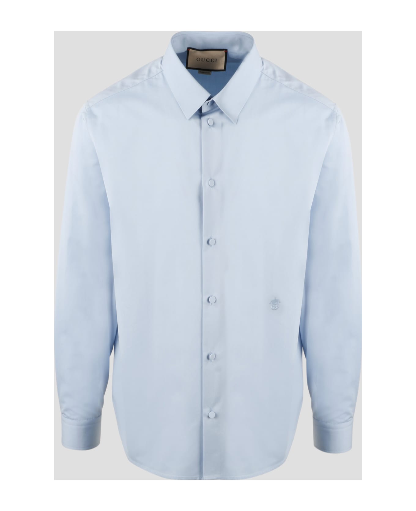 Gucci cotton poplin shirt with matching embroidery. - SS23 - Regular fit - Jester hat with Interlocking G embroidery - Pointed collar - Closure with covered buttons - Buttoned cuffs - Rounded bottom - Made in Italy - 100% Cotton