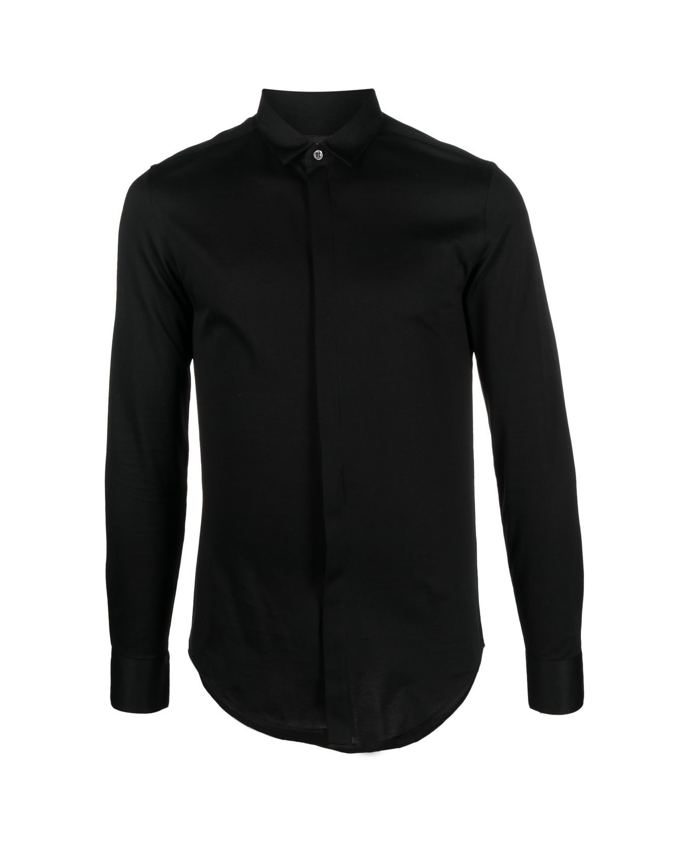 slim-fit cotton shirt from EMPORIO ARMANI featuring black, cotton, button-down collar, long sleeves, buttoned cuffs and curved hem. Composition: Cotton, 100%