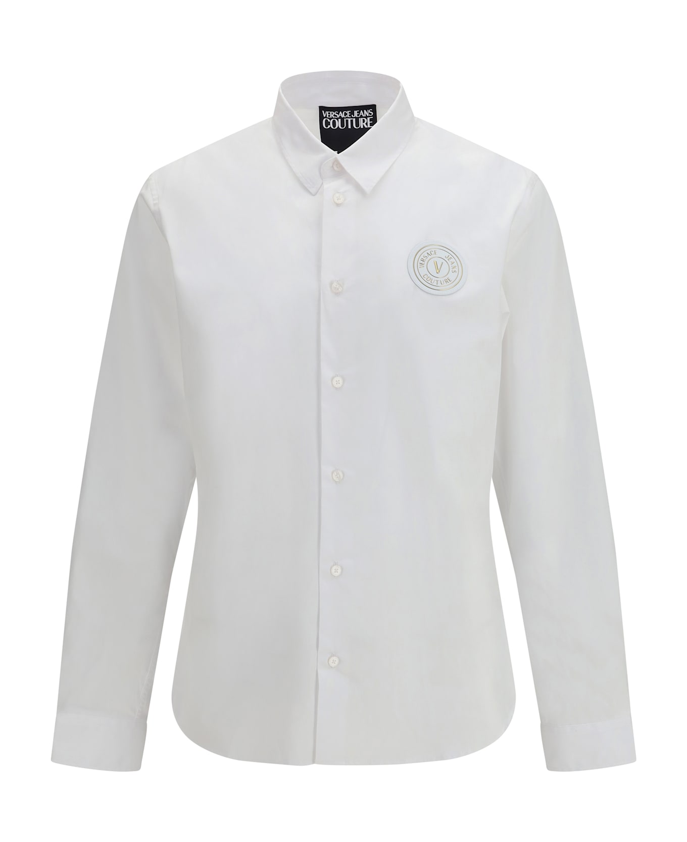 The emblem shirt by versace jeans couture delivers contemporary elegance with distinctive character. featuring a classic collar, long sleeves, and a front button fastening, it is enhanced by a logo patch at the chest that adds an iconic touch. a versatile piece, perfect for elevating refined looks with a bold edge.