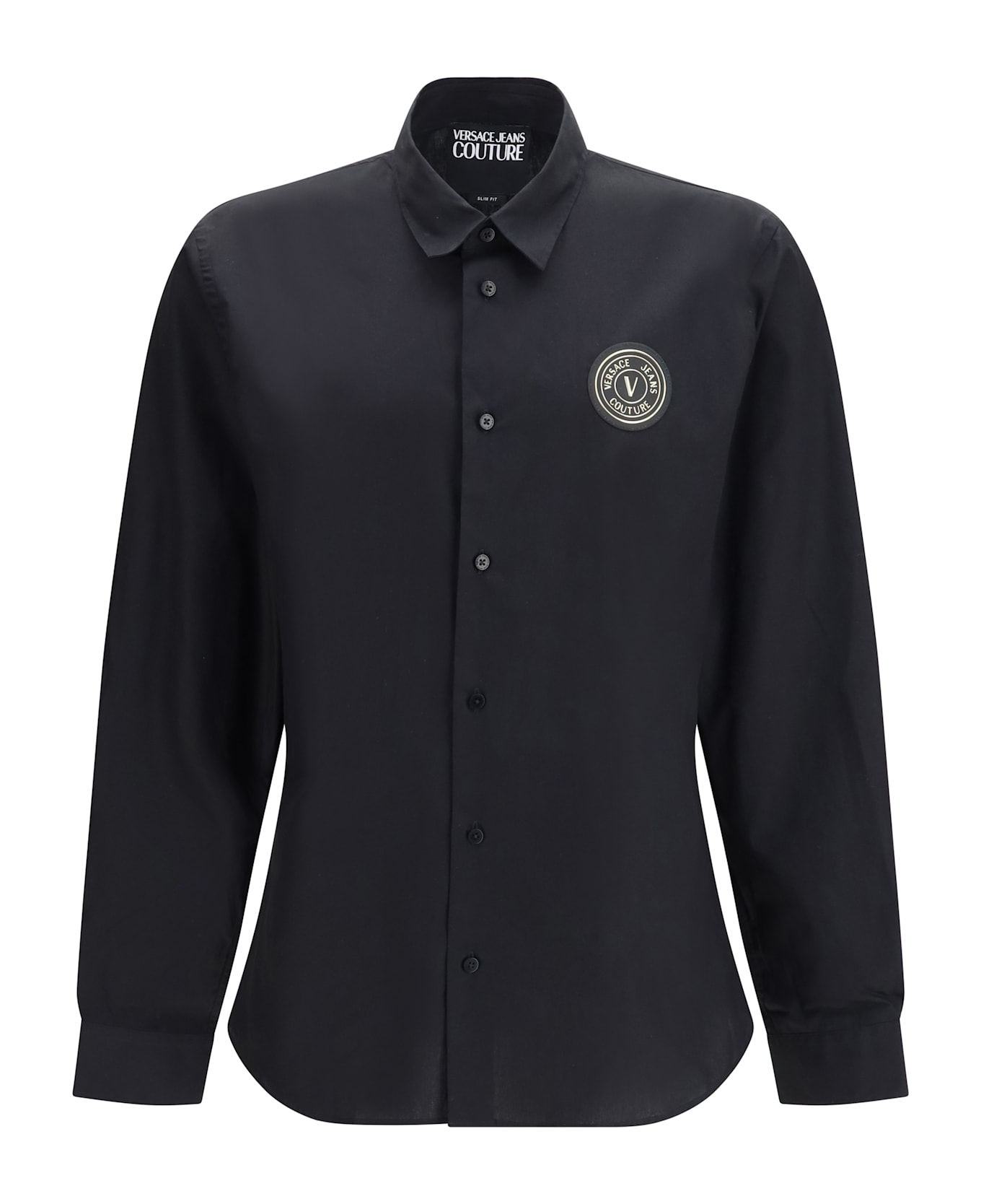 The emblem shirt by versace jeans couture delivers contemporary elegance with distinctive character. featuring a classic collar, long sleeves, and a front button fastening, it is enhanced by a logo patch at the chest that adds an iconic touch. a versatile piece, perfect for elevating refined looks with a bold edge.
