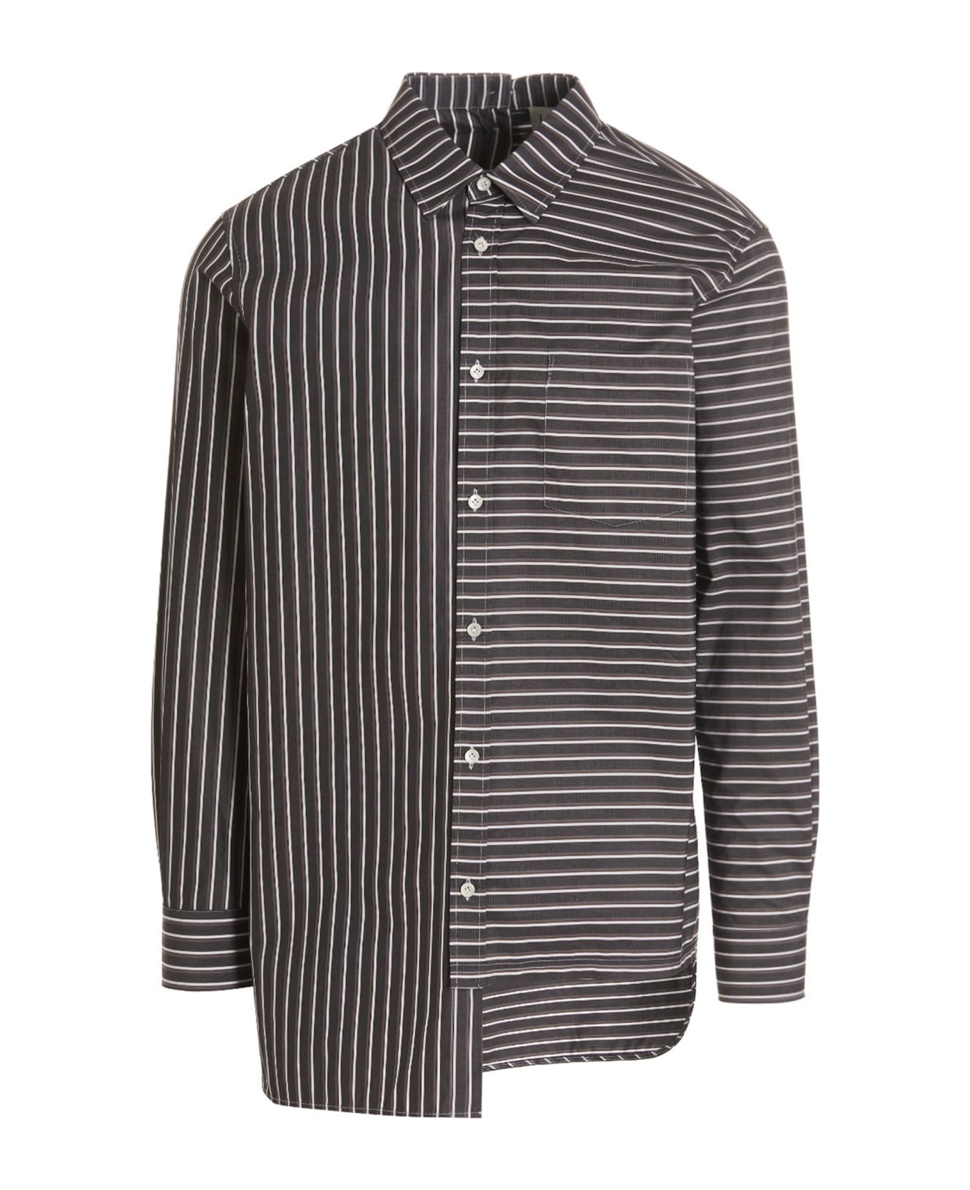 Stripe cotton poplin shirt with front and back buttons, chest pocket. Composition: 100% cotton