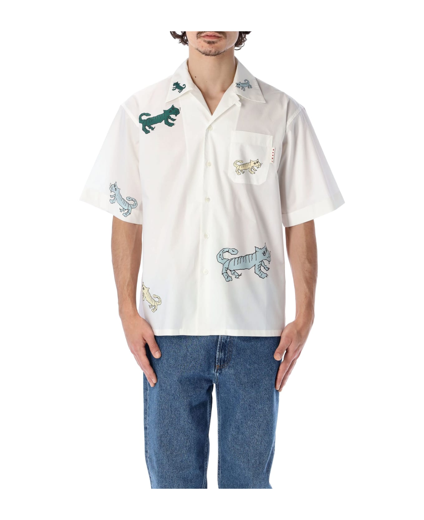White Cotton Naif Tiger Bowling Shirt By Marni. Featuring: