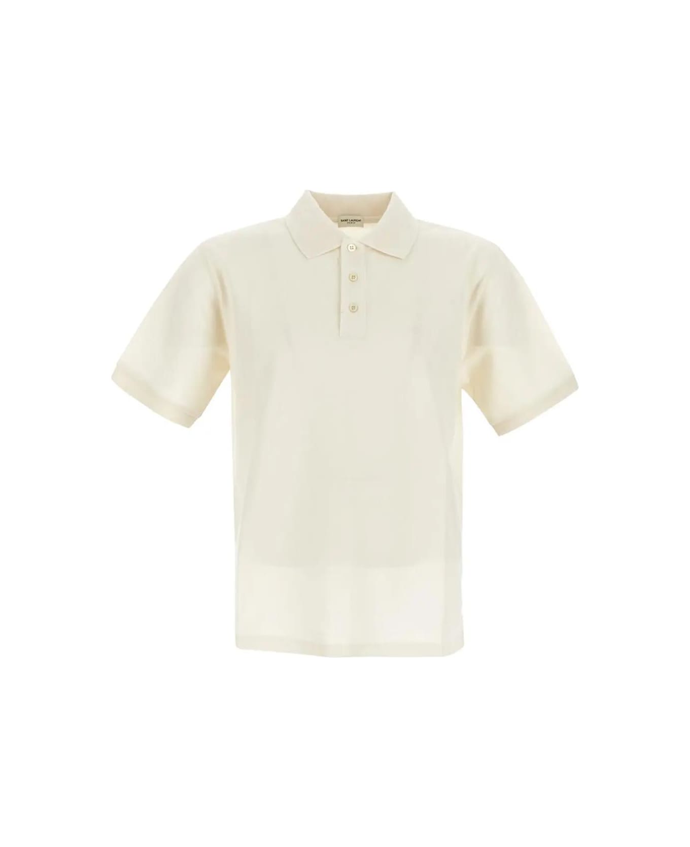 Saint Laurent polo shirt in natural cotton/polyester blend with flat collar, short sleeves, three button closure, regular fit and tonal logo embroidery on the chest. Composition: 50% Cotton; 50% Polyester