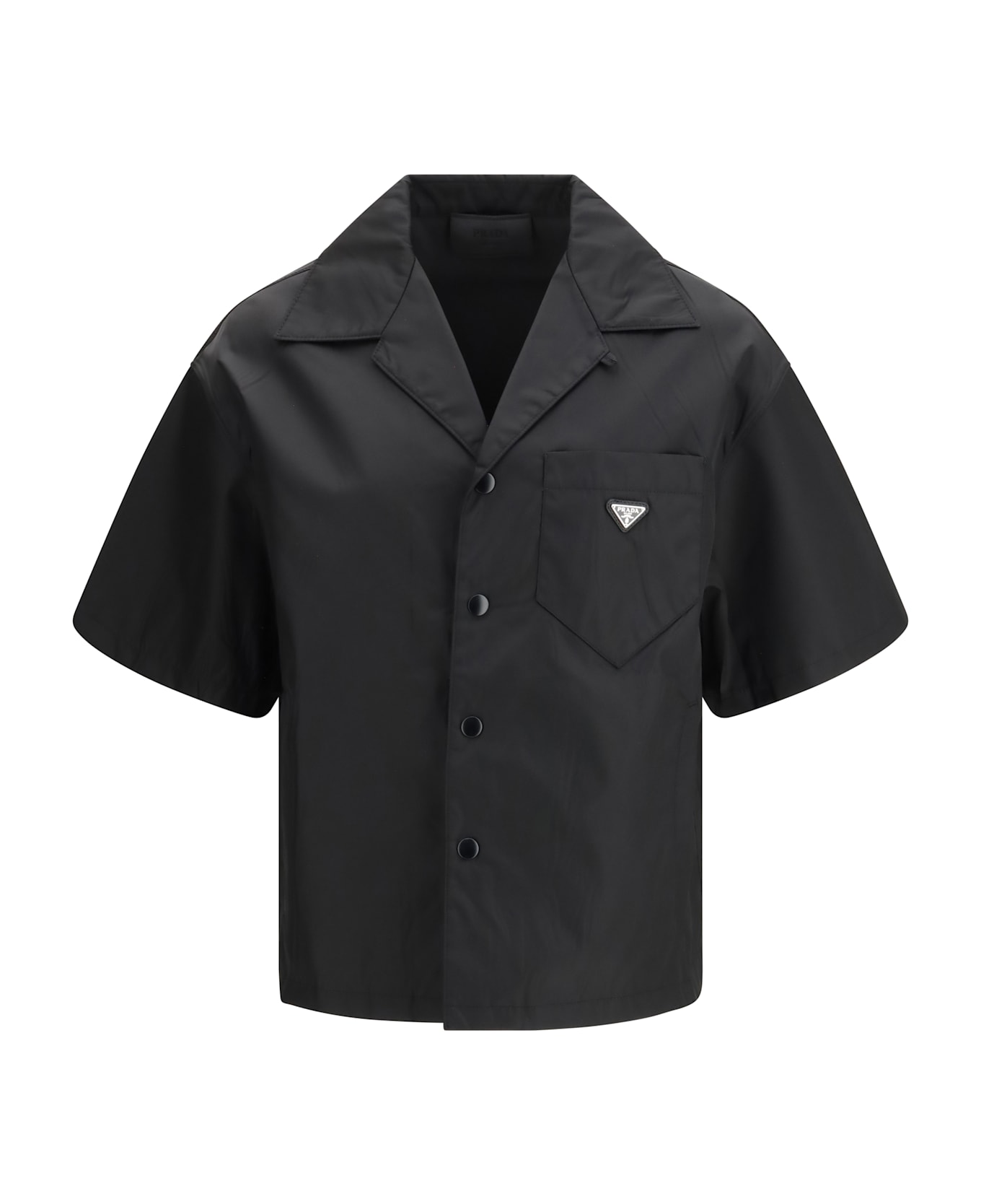 The short-sleeve re-nylon shirt by prada delivers a contemporary and conscious aesthetic, blending essential design with sustainable innovation. the relaxed fit and bowling collar create an easy silhouette, while the straight hem and classic chest pocket reinforce its clean character. a snap-button front closure and visible topstitching introduce a technical touch, finished with the iconic enamelled metal triangle. the fabric is made from regenerated nylon yarn derived from plastic waste recovered from the oceans, reflecting prada s commitment to more responsible fashion. Composition: 100% % Recycled Polyamide