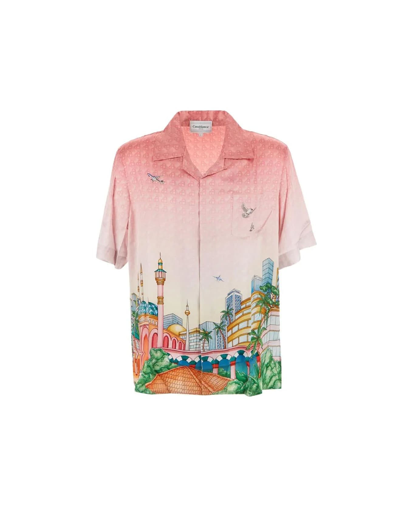 Casablanca shirt in pink silk with short sleeves. The item is featured by button closure, pointed collar and pocket on the chest. Composition: 100% Silk