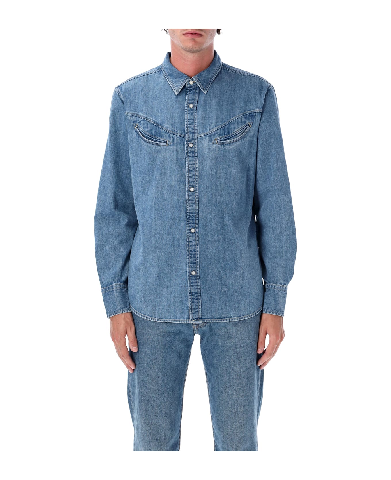 Smiley Western Shirt By Levi's. Featuring: Cotton Denim Classic Collar Snap Button Closure Long Sleeves Yoke Details Western-style Welt Pockets At Chest Regular Fit Andrea Is 1,90 M And Wears Size L