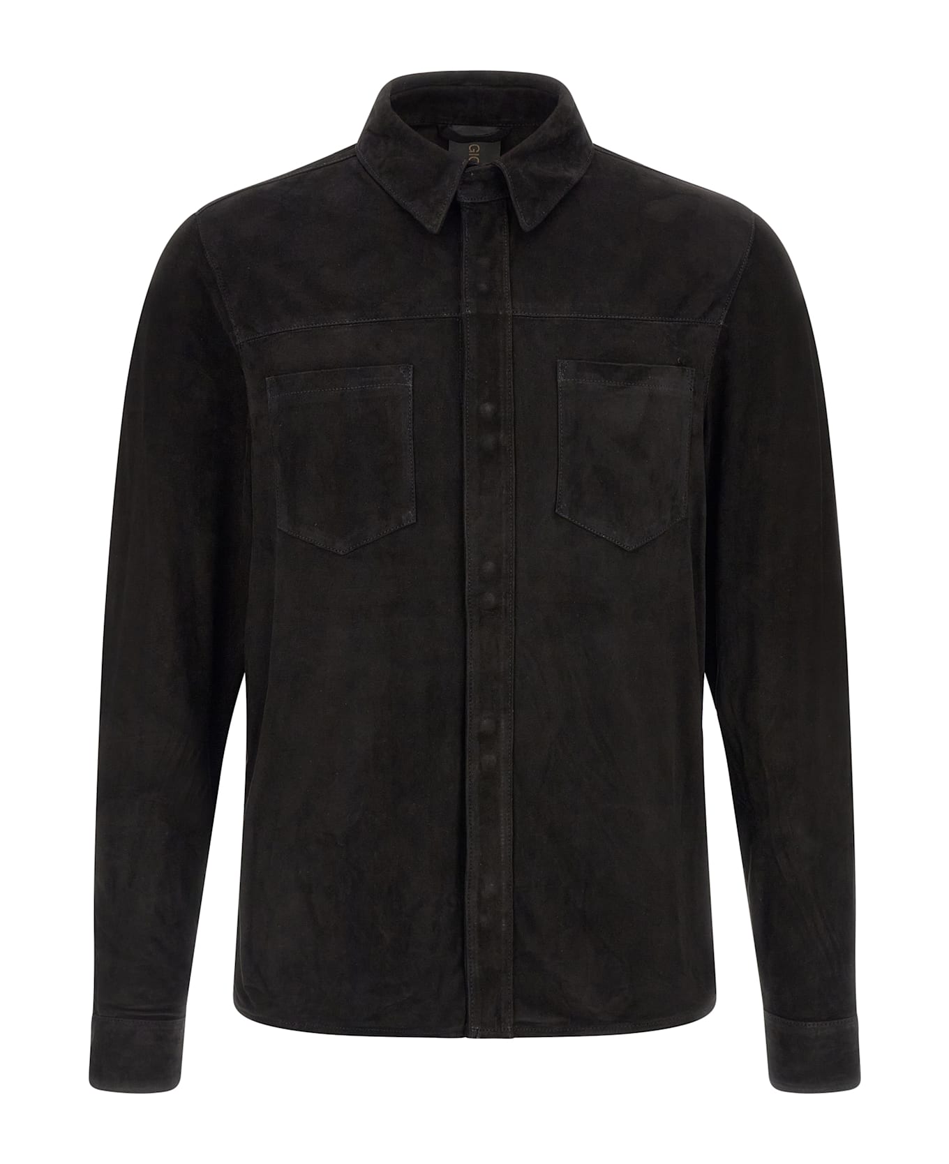 Suede shirt Gloves, pockets, front snap button closure, long cuffed sleeves.