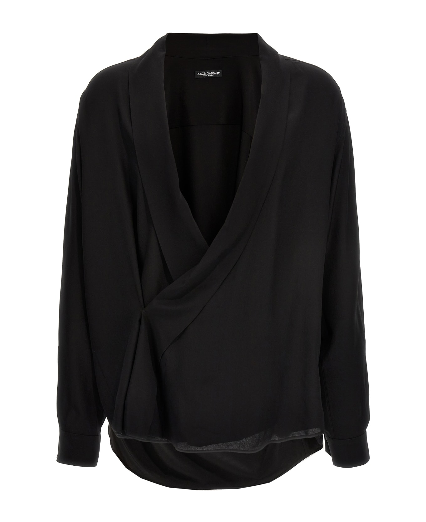 Silk shirt with wide neckline, long cuffed sleeves. Composition: 100% silk