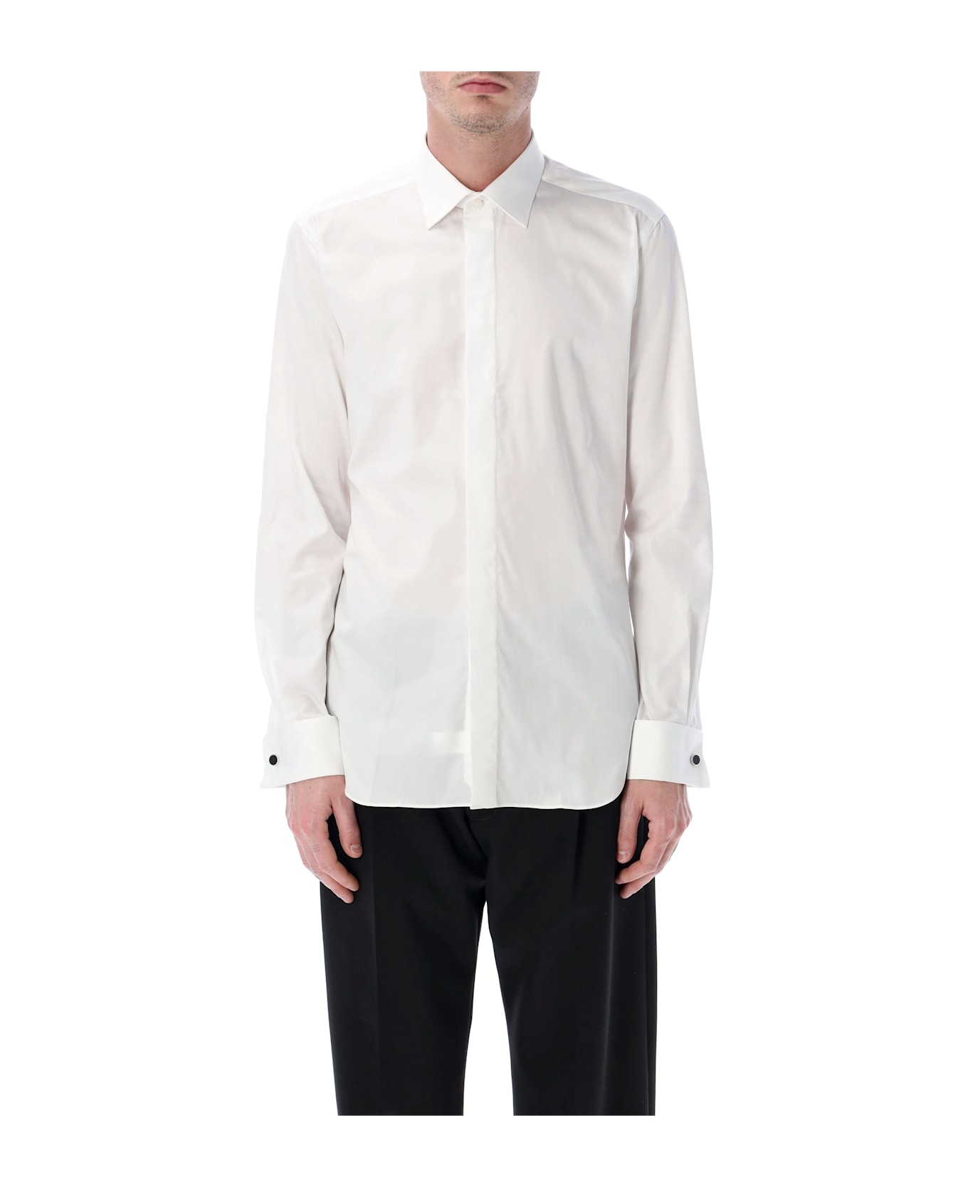 The Xacus White Shirt With Italian Collar Delivers Refined Formal Elegance For Ceremonies And Special Occasions. Crafted In Solid Cotton Poplin, This Italian Collar Shirt Features A Concealed Front Placket And Fine Stitched Detailing, Enhancing Its Clean And Sophisticated Silhouette. The Tailor Fit Cut Balances Modern Proportions With Superior Comfort. Solid Cotton Poplin Fabric