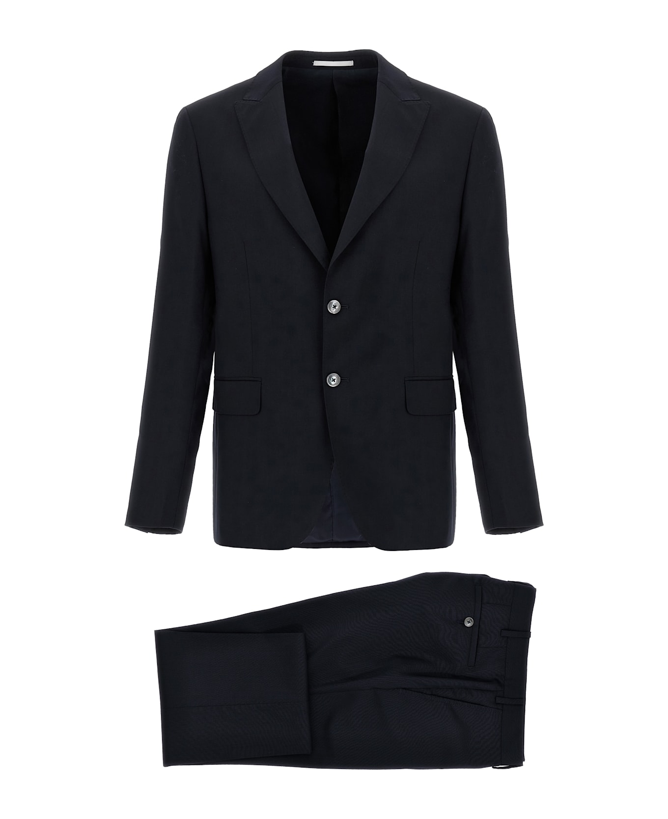 Dress - Ceremony line in wool with mother-of-pearl buttons consisting of single-breasted blazer with button closure, mirror lapels, breast pocket, flap pockets, viscose lining, two internal pockets, structured shoulder strap, cuffs with opening buttonholes, back slits and trousers with stretched pleat, front 'americane' pockets, back welt pockets, front zip and button closure, viscose lining.