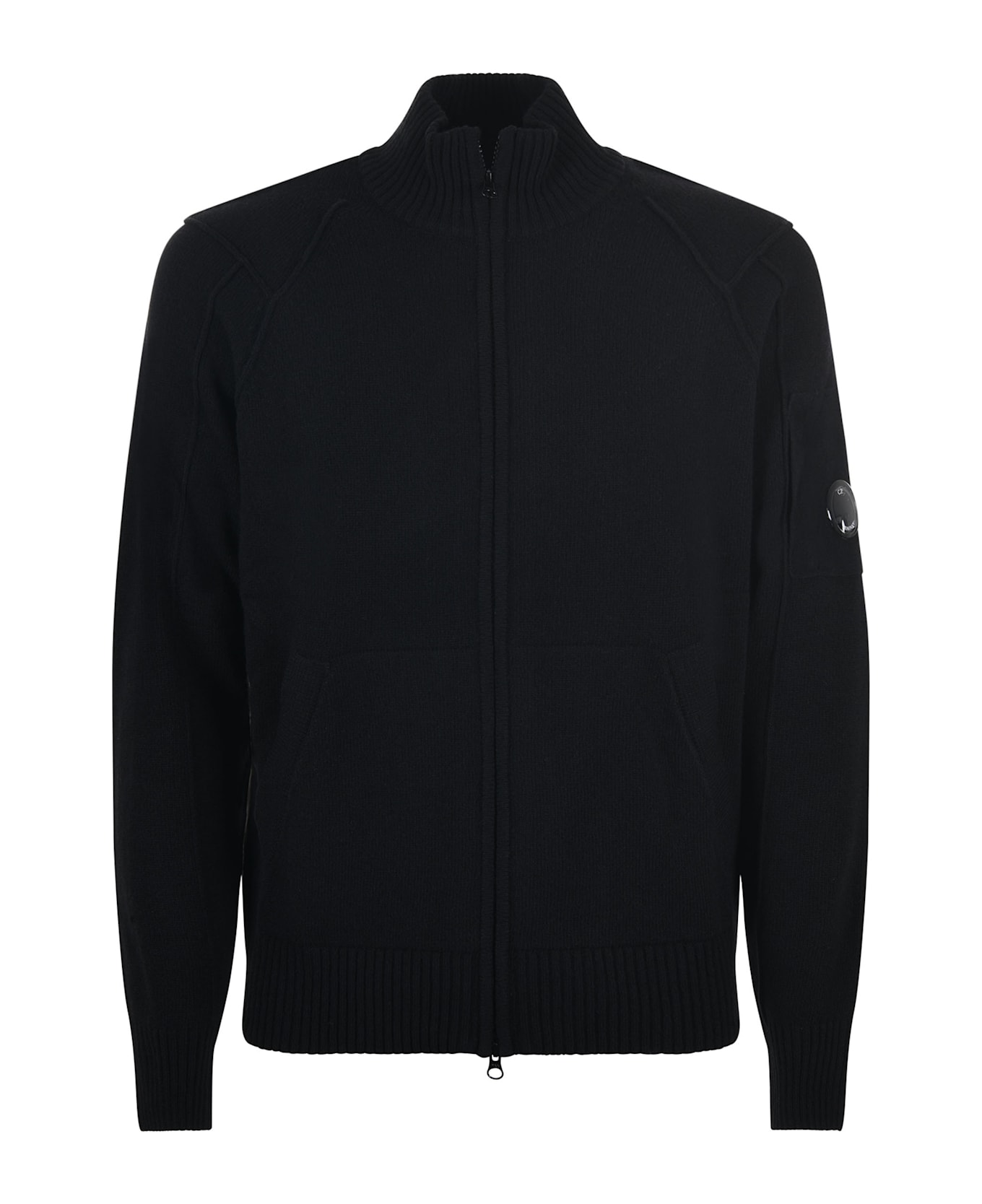 Cardigan C. P. Company in Black wool blend. Ribbed high collar. Long sleeve. Ribbed cuffs and bottom. Kangaroo pockets. Double slider zip closure. Pocket with zip and goggle lens on the left sleeve. Measure in photo 46 80% wool, 20% polyamide Controlla i dettagli