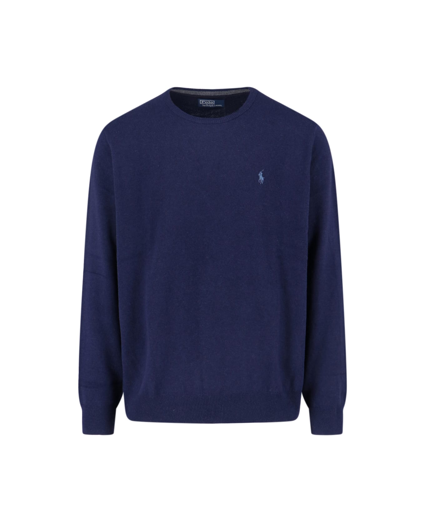 Polo Ralph Lauren logo sweater in navy shades, wool with crew neck, ribbed trim, dropped shoulders, blue logo embroidery on the chest, straight hem.