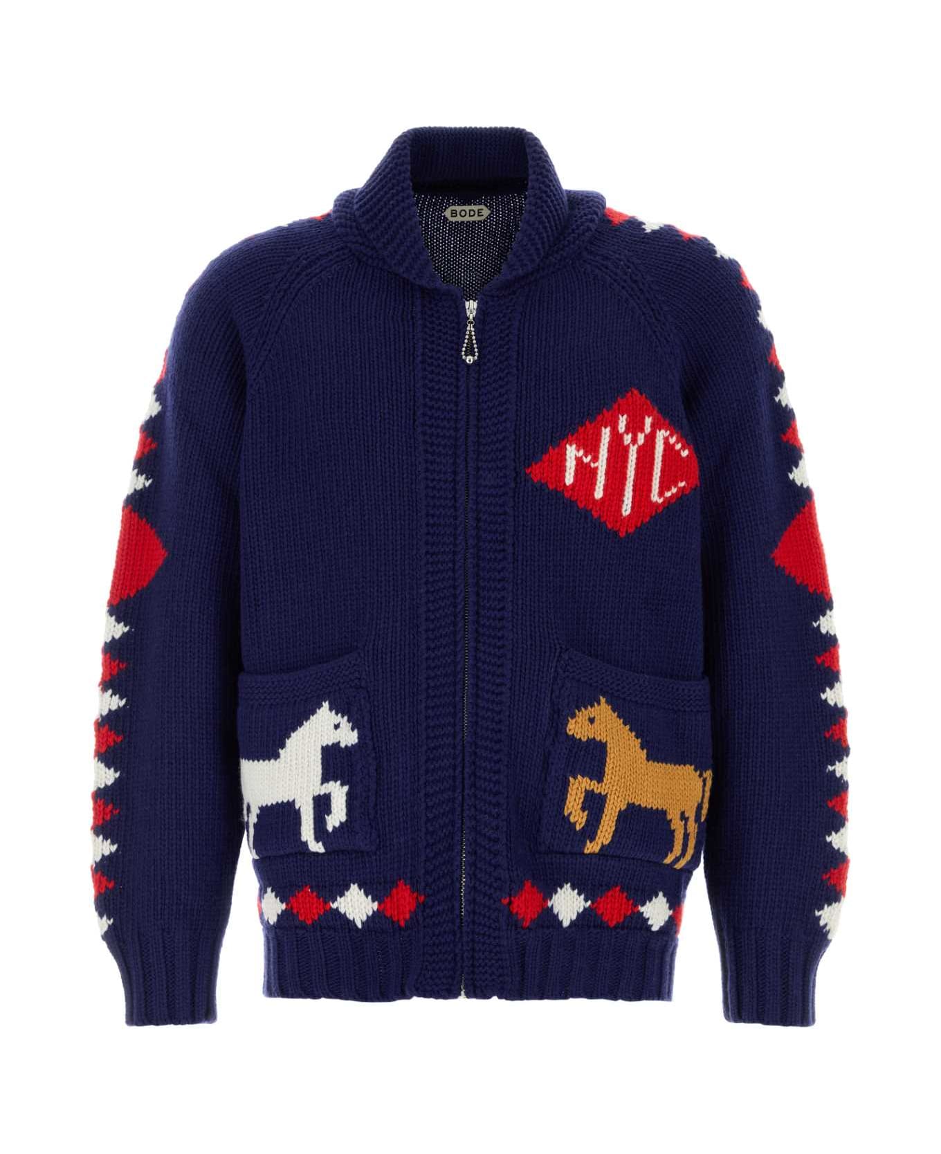 Blue Wool Diamond Cardigan from Bode