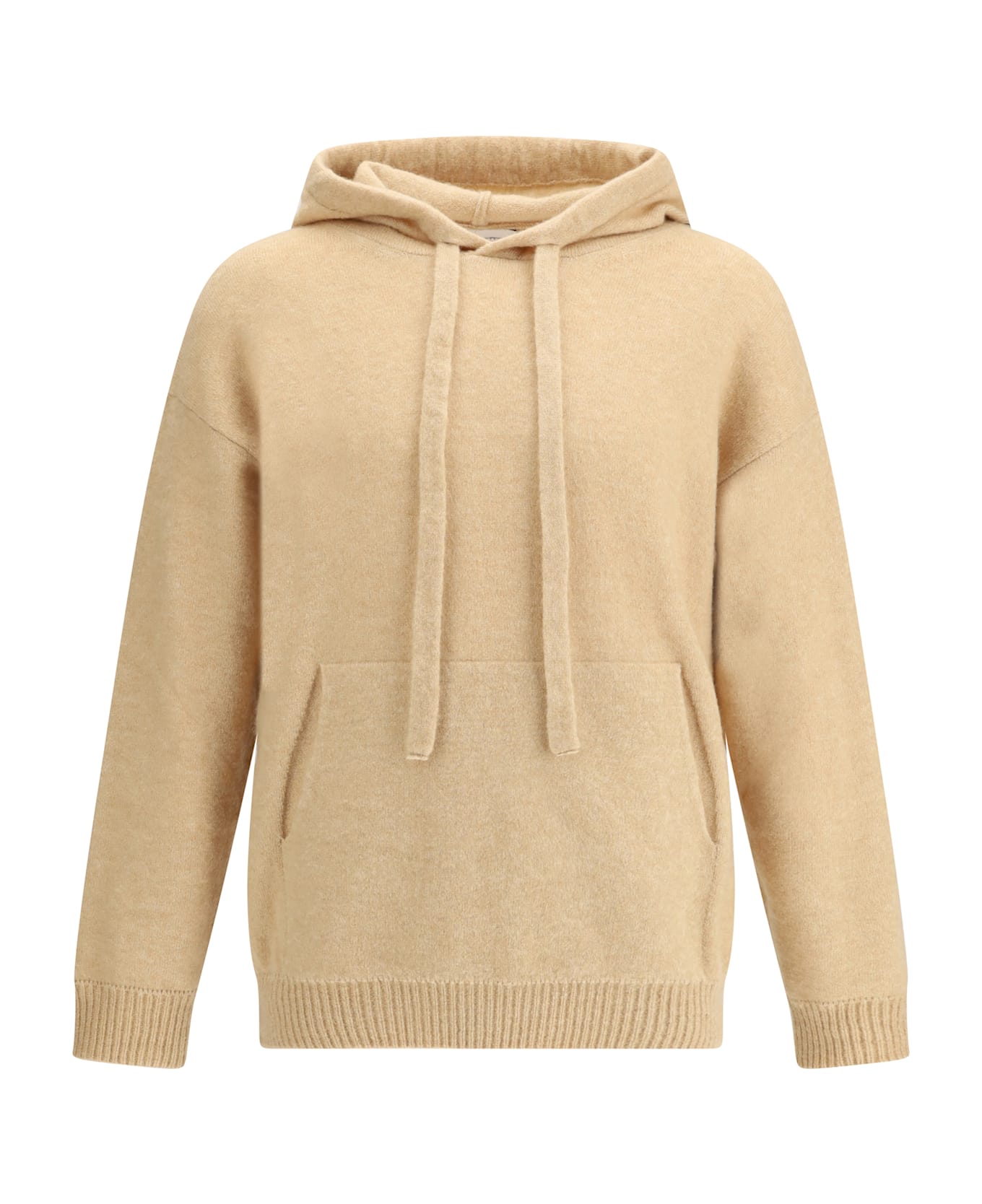 The cashmere hooded sweater by laneus combines the elegance of fine yarn with a casual, relaxed design. made of soft cashmere, it offers a snug, comfortable feel that's ideal for relaxed moments or sophisticated looks with a casual spirit. the adjustable drawstring hood adds practicality, while the ribbed hem and cuffs ensure a well-defined fit. completing the design is the pouch pocket on the front, a functional detail that echoes the garment's sporty-chic aesthetic.
