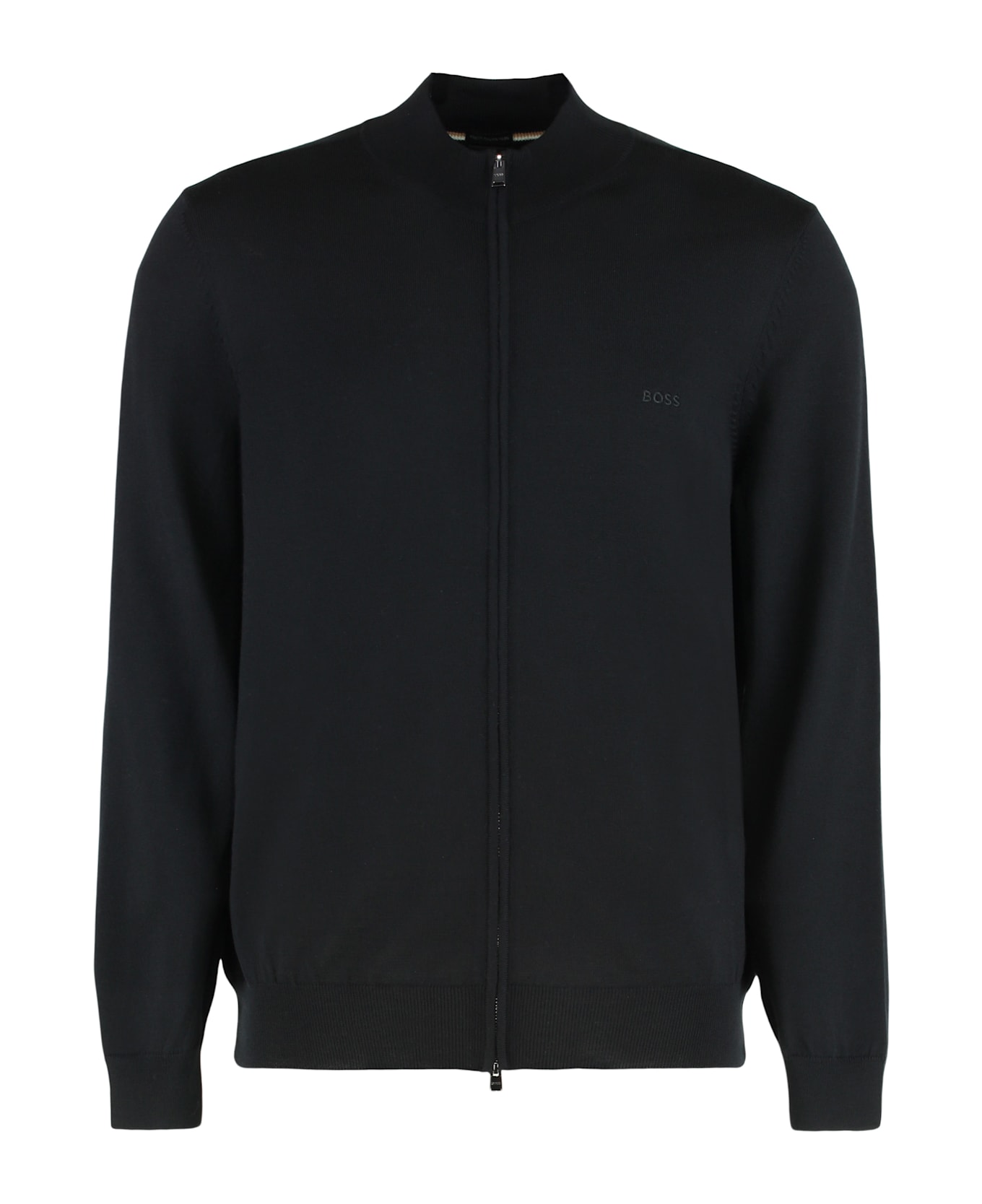 This elegant cardigan features a simple and minimalist design, made in a classic black color, perfect for any occasion. the front closure with double-slider zip and the high collar give a sophisticated touch, while the long sleeves provide comfort and warmth. the fabric is soft and pleasant to the touch, making it ideal for layering during the cooler months. it easily adapts to different styles, both casual and formal, making it a versatile piece to add to your wardrobe.
