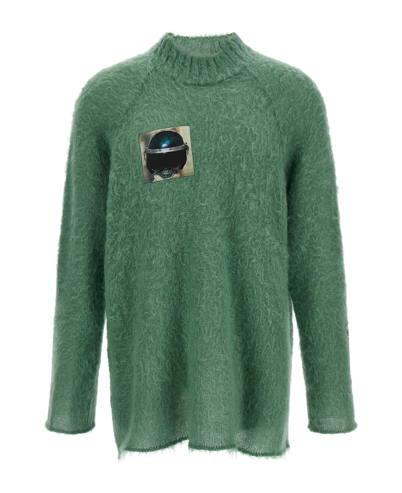 'UC2E4904-2' sweater in wool and mohair blend, jacquard patch with artwork by French artist HELDON, crew neck, long sleeves with dropped shoulders.