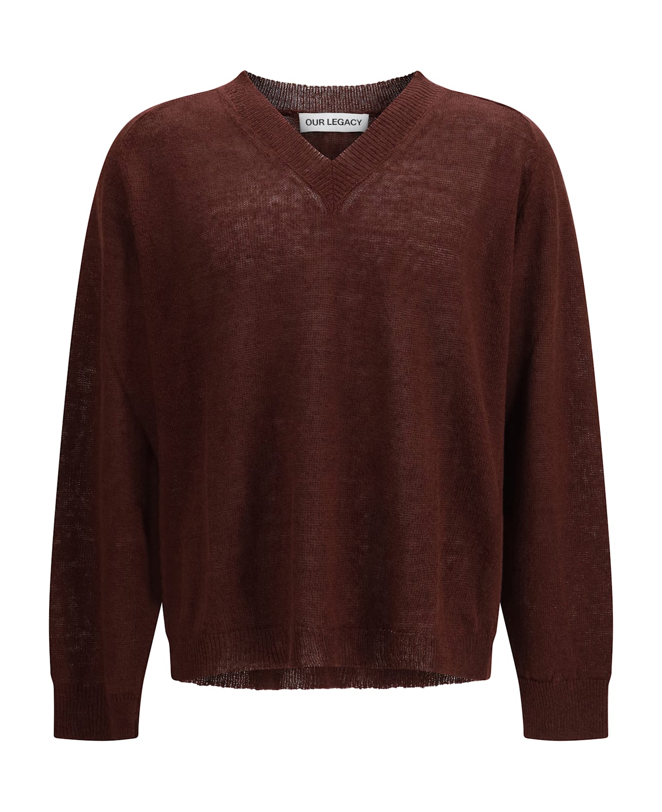 The v-neck sweater by our legacy approaches essential knitwear with a clean, contemporary sensibility. crafted from linen, it features a defined v neckline and long sleeves that create a light, balanced silhouette. ribbed trims add structure to the design, maintaining a refined sense of ease. a piece designed for understated elegance with a timeless feel.
