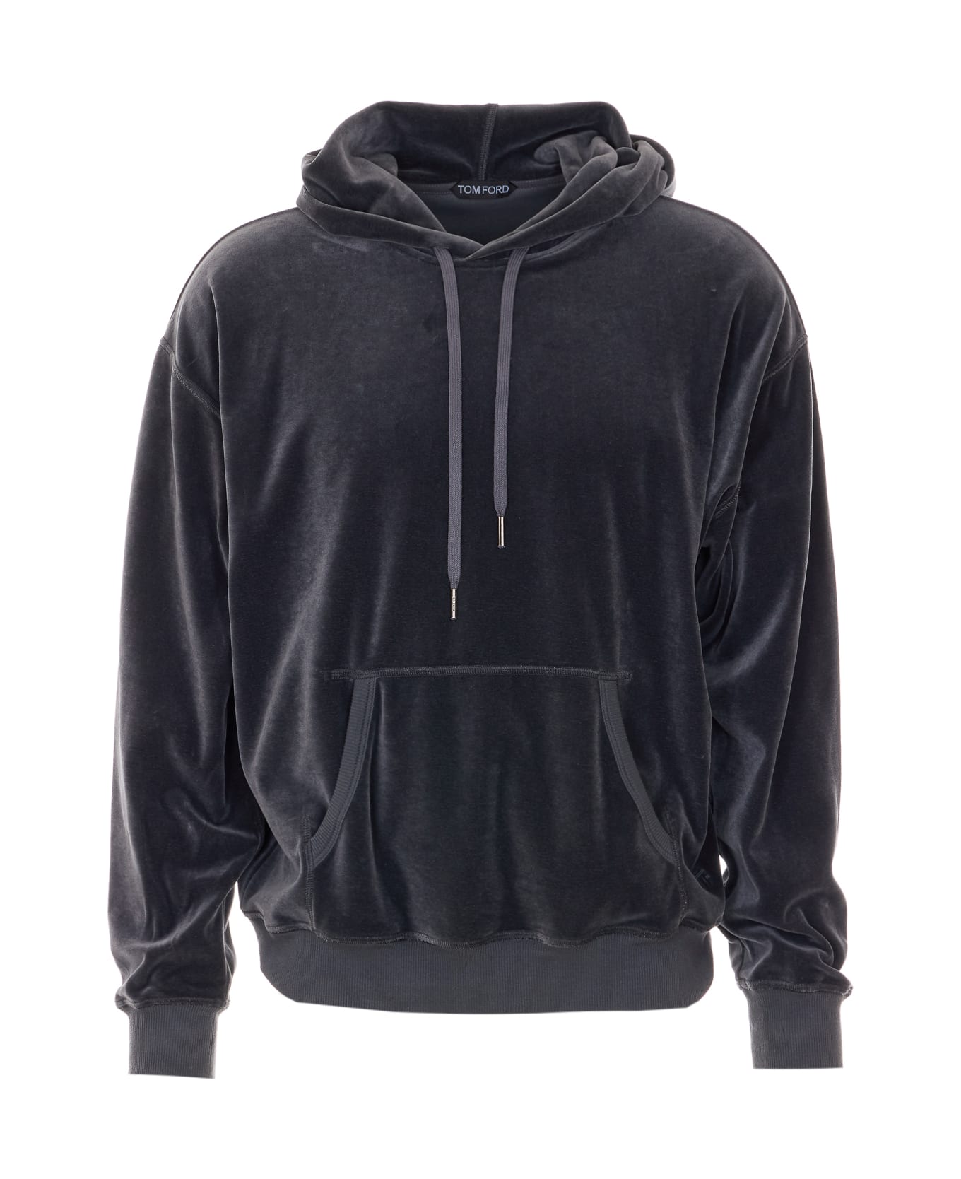 Tom Ford grey velour hoodie, hood with coulisse, long sleeves, kangaroo pocket, embroidered logo on the front Composition: 80% Cotton, 18% Polyamide, 2% Elastane, 98% Cotton, 2% Elastane