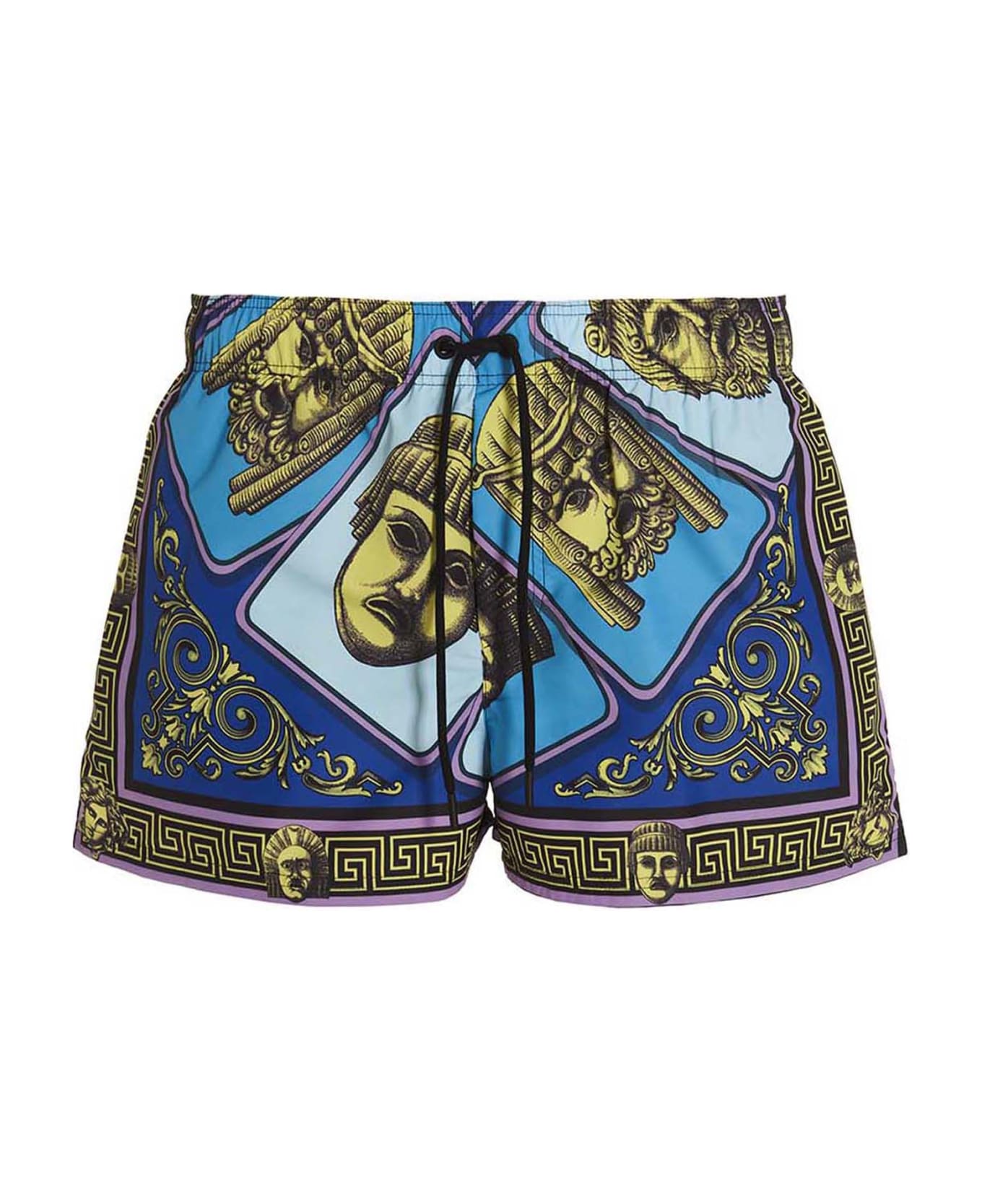 Swimming trunks in tech fabric with all over 'Masks' print, a drawstring and elastic at the waist, pockets and inner mesh briefs. Composition: 100% polyester