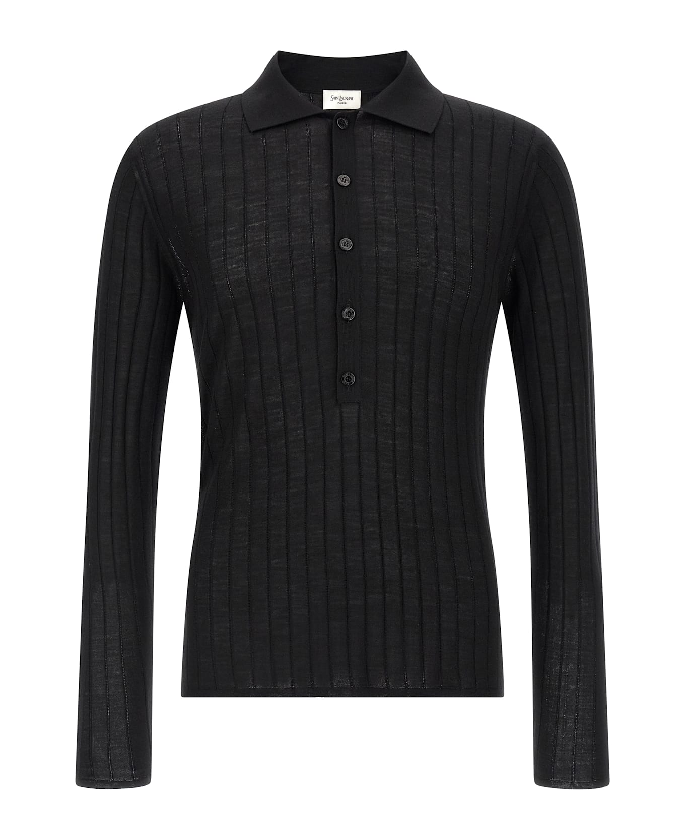 Semi-transparent wool pointelle polo shirt with flat ribs, collar and buttons, long sleeves. Composition: 100% wool