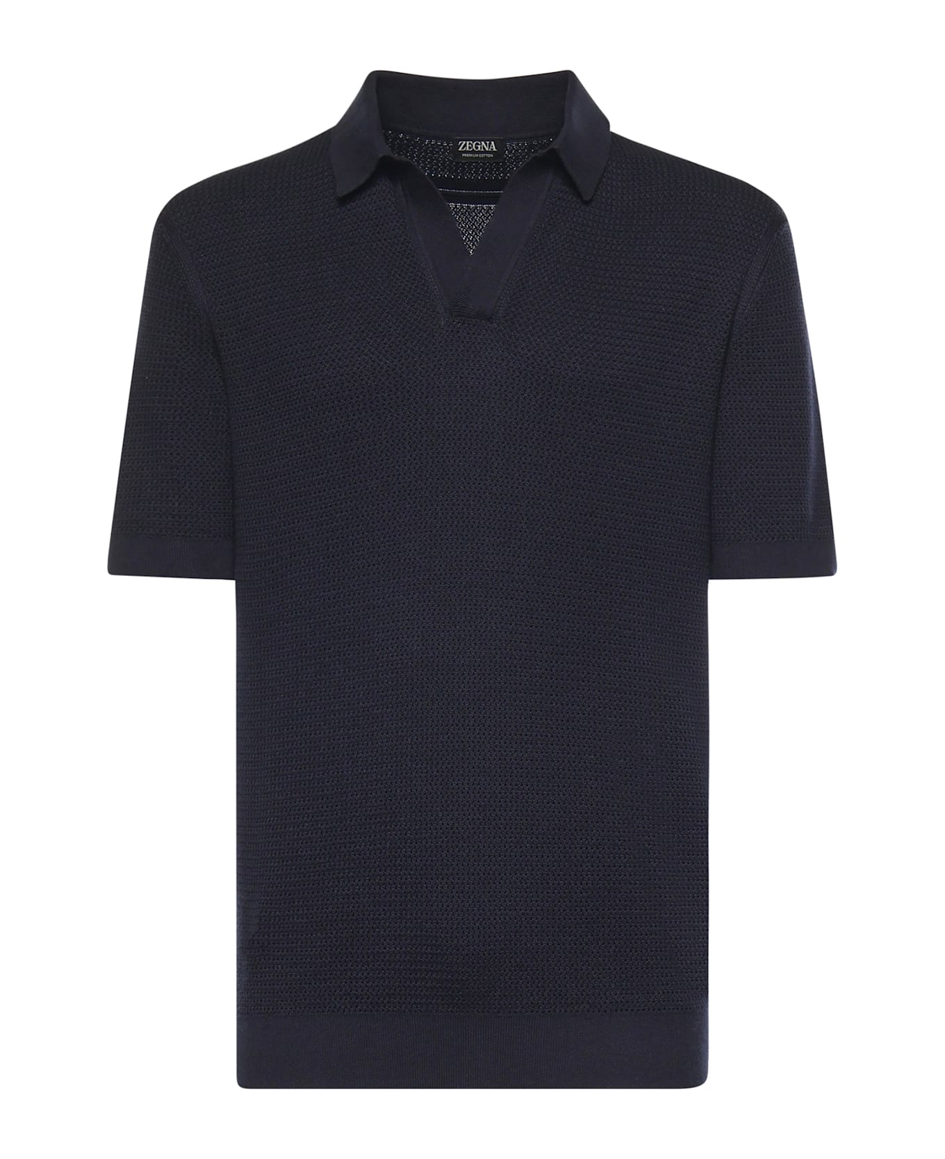 - Open polo collar - Short sleeves - Regular fit - Made in Italy - Size shown is 48 - Color: Navy Blue