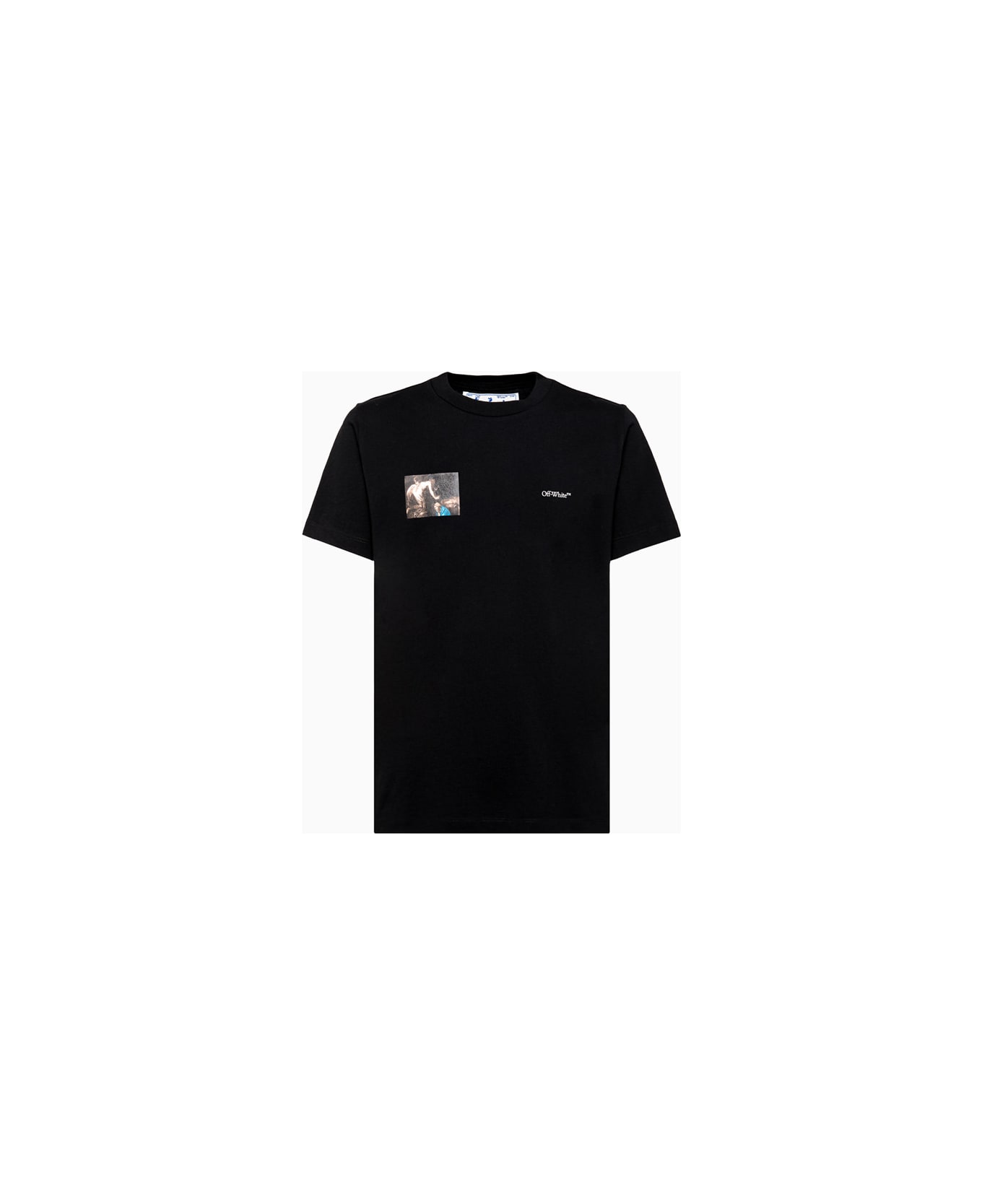 caravaggio angel short sleeve, scoop neck t-shirt in solid color cotton. ribbed collar. caravaggio painting patch and off-white logo at chest. caravaggio arrows maxi print at back. oversized fit. composition: 100% cotton.