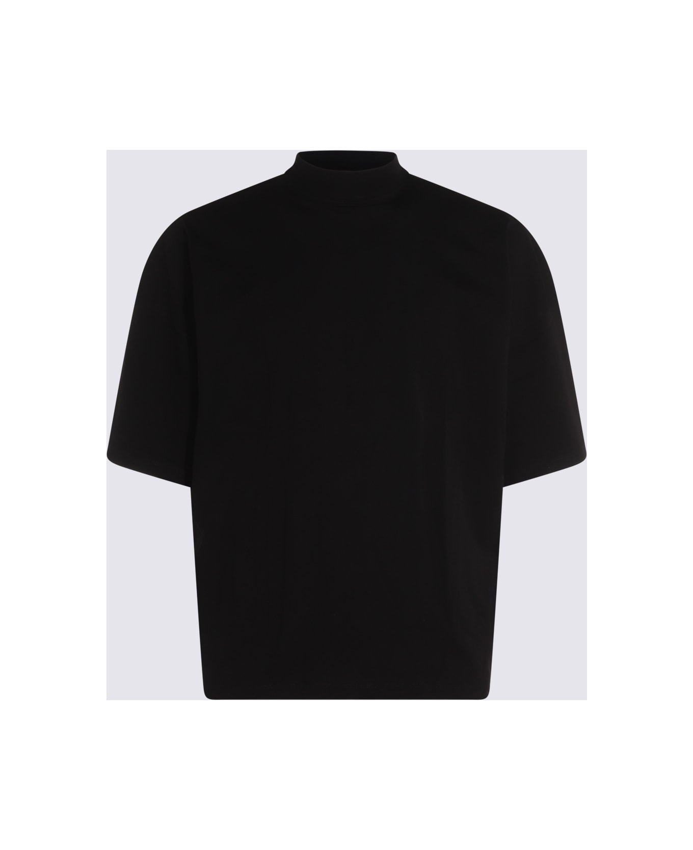 Black cotton T-shirt from Jil Sander featuring mock collar, short sleeves and soft vestibility. Composition: _, 100% Co