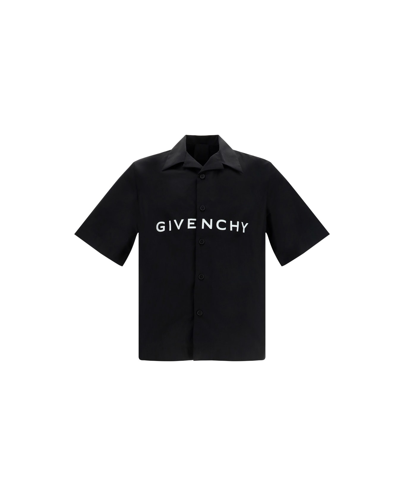 Cotton boxy shirt by givenchy, classic collar, short-sleeved design, front fastening with matching buttons, iconic brand monogram printed in contrasting colour on the front. Composition: 100% % Cotton