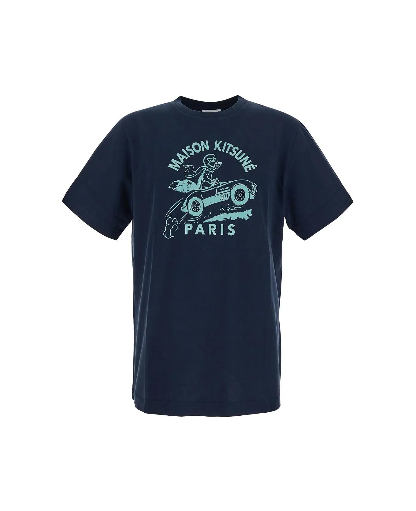 Maison Kitsun -shirt in cotton with short sleeves, crewneck and logo print on the chest.