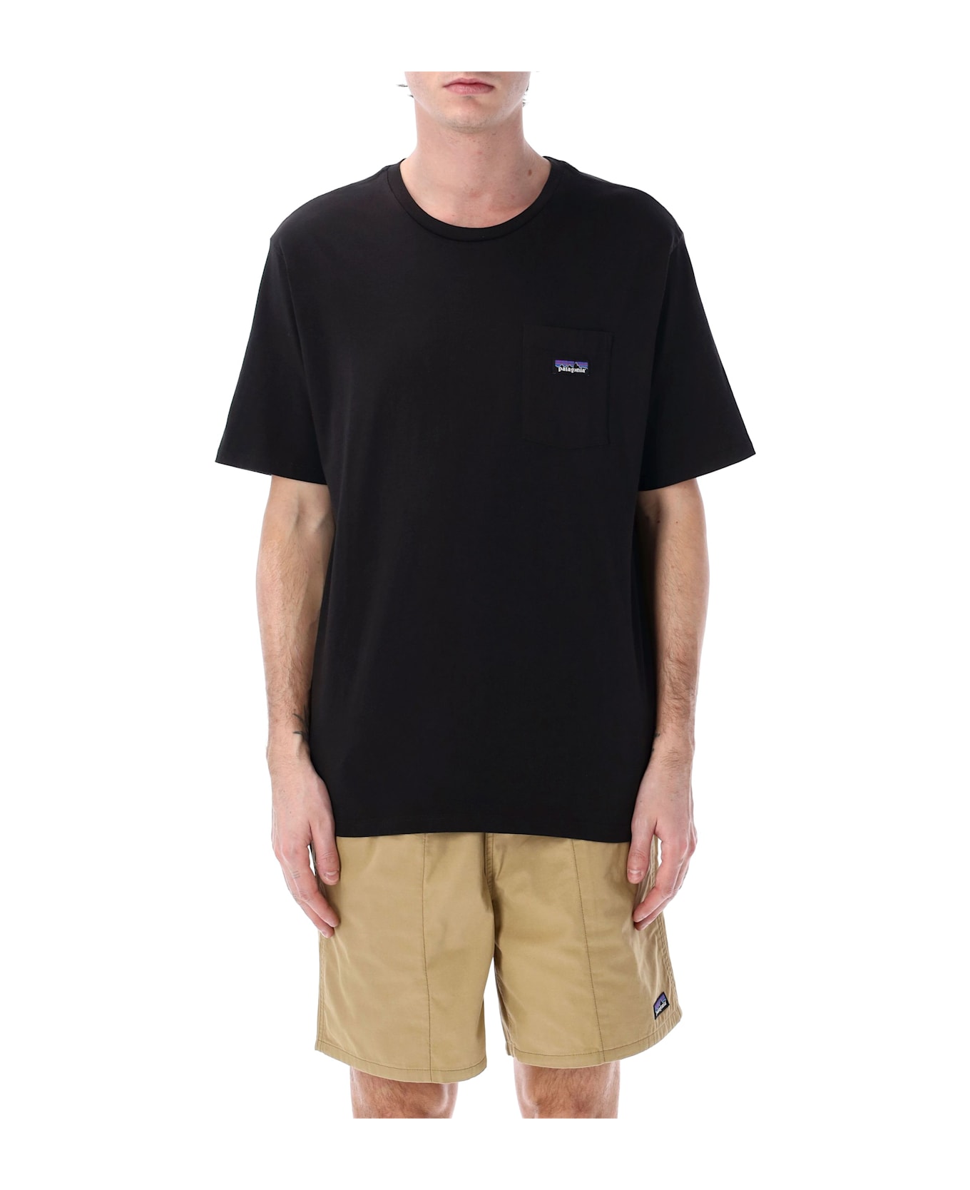 Cotton Daily Pocket Tee By Patagonia. Featuring: Ribbed Crewneck Short Sleeves Chest Patch Pocket With "patagonia" Label Patch Straight Hem Model Is 1,90 M And Wears Size L
