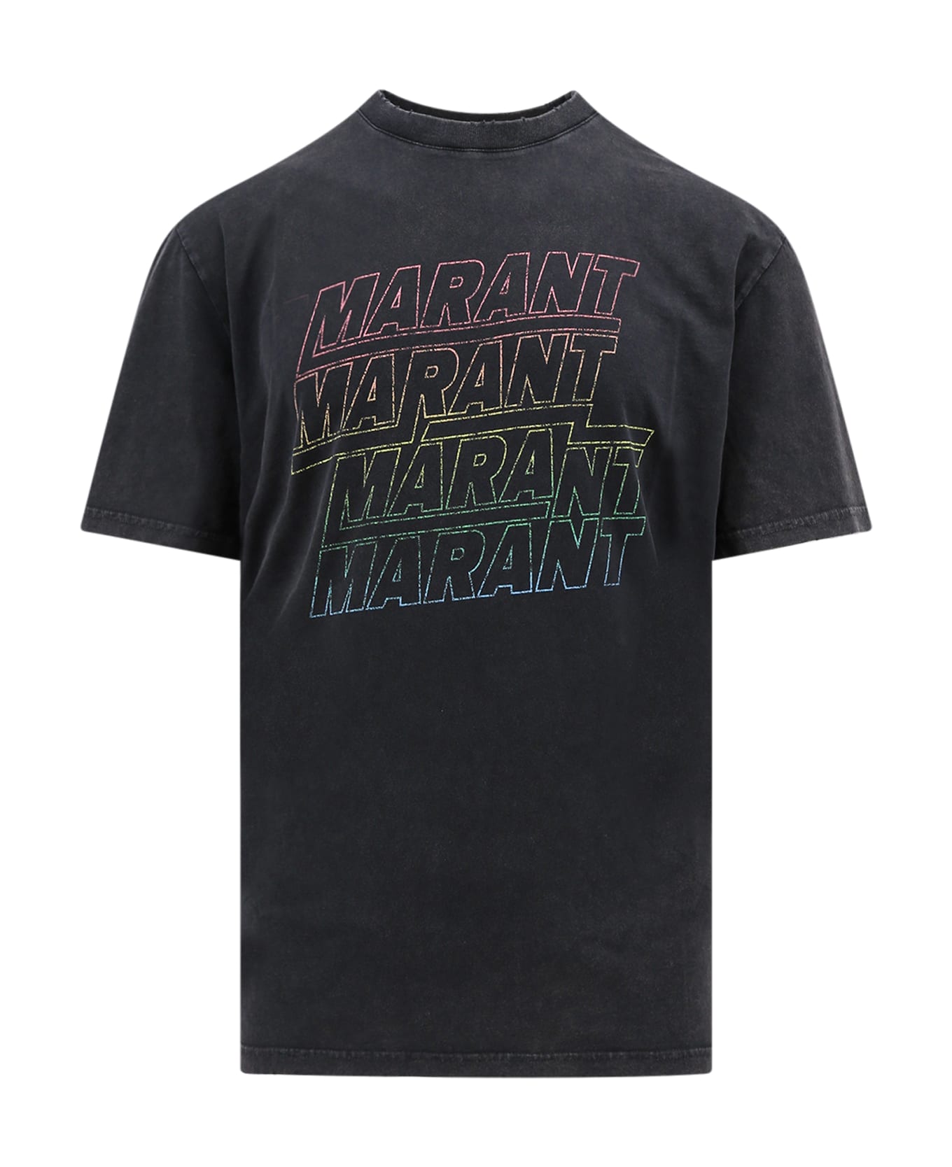 - Ribbed Crew-neck - Short Sleeeve - Vintage Effect - Multicolor Logo Print On The Front - 100% Organic Cotton - Conscious