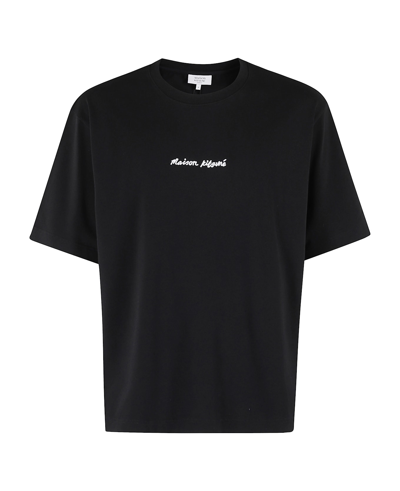 Handwriting T-Shirt - Maison Kitsuné - Black color - Ribbed crew neck - Short sleeve - Contrasting embroidered logo on front - Over fit