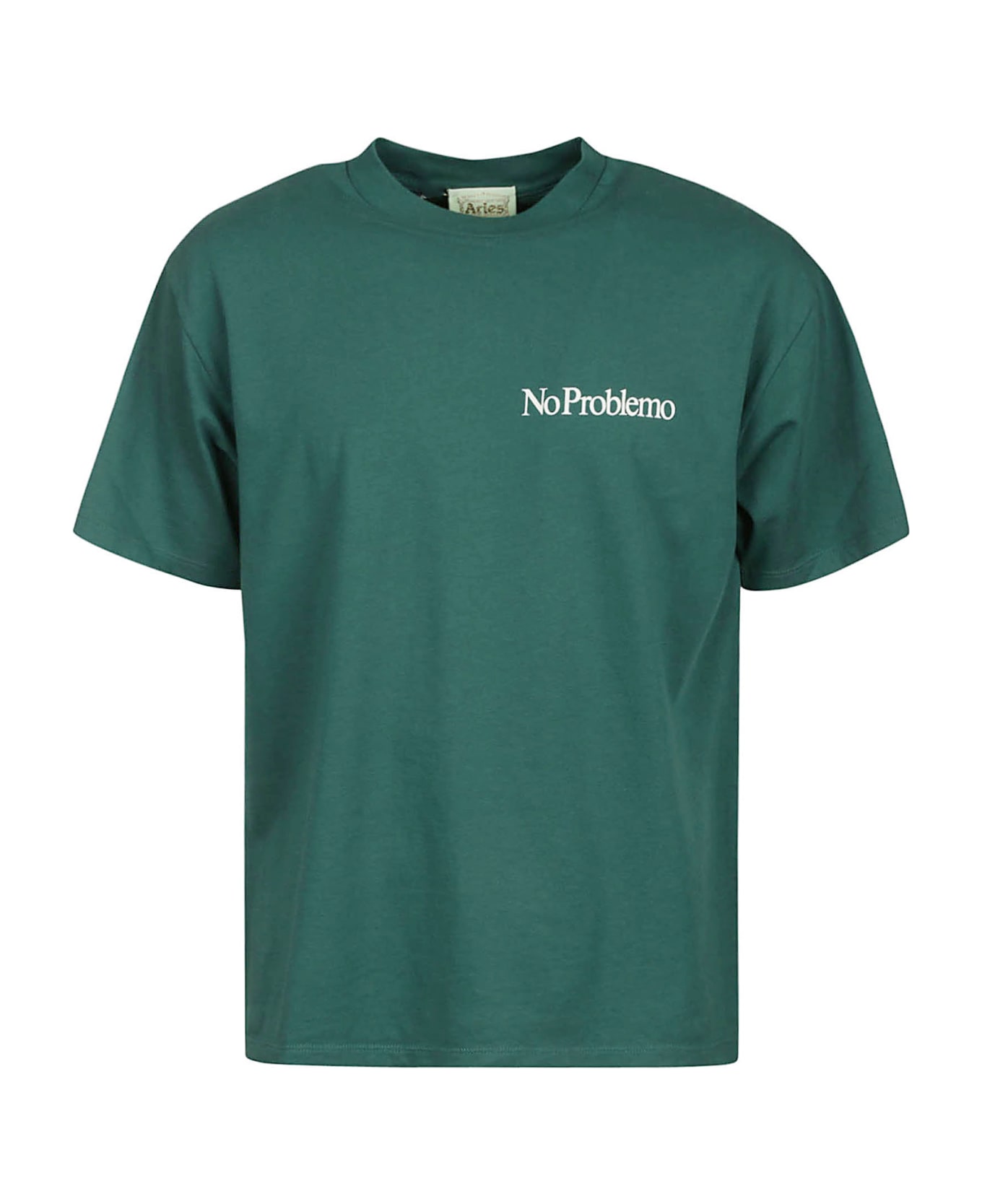 Aries Green cotton t-shirt, chest print, short sleeves.