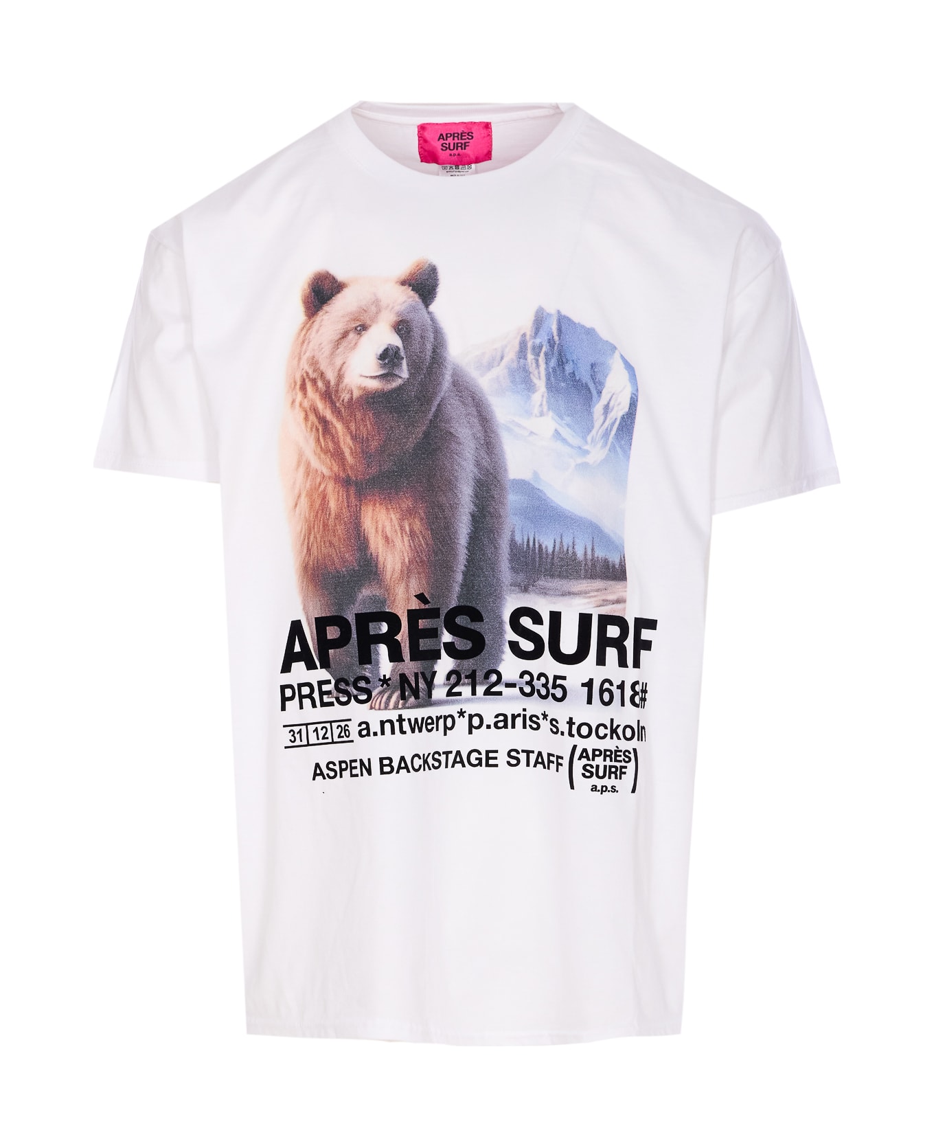 Apres Surf white My Mountain t-shirt, crewneck, print on the front, lofo on the front, print on the back