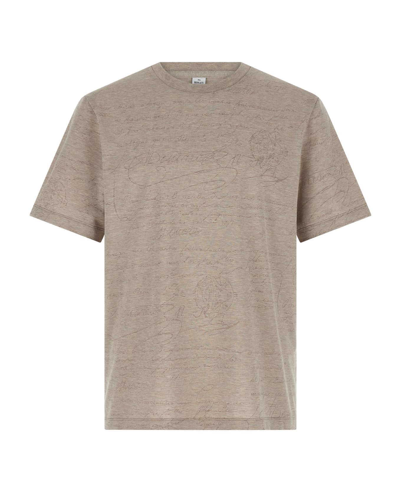 Piqué cotton t-shirt with all-over jacquard 'Scritto' pattern, crew neck, and short sleeves.