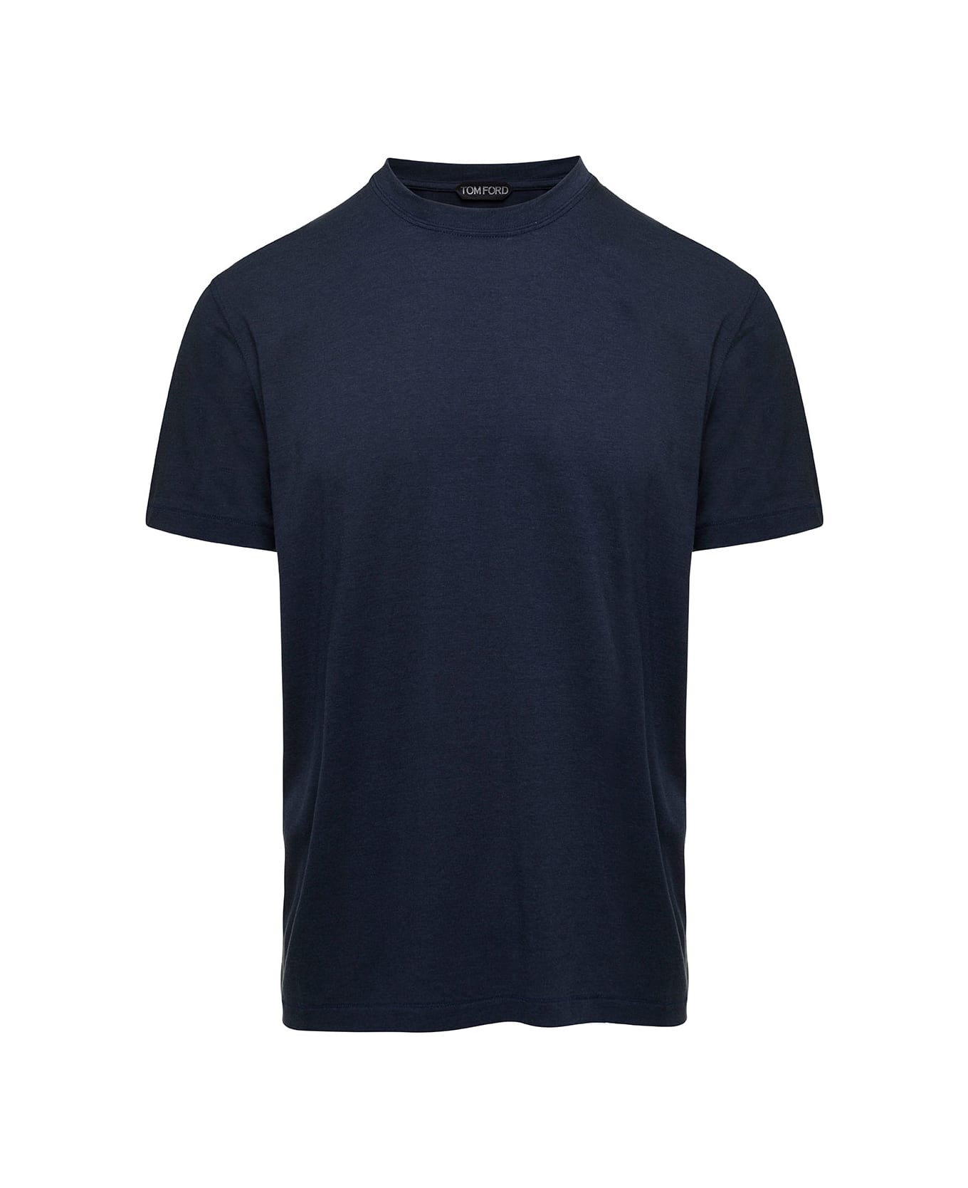 T-ShirtCrew neck Short sleevesStraight hem Embroidered logo Blue Cotton Regular fit Composition: 67% Lyocell 33% Cotton
