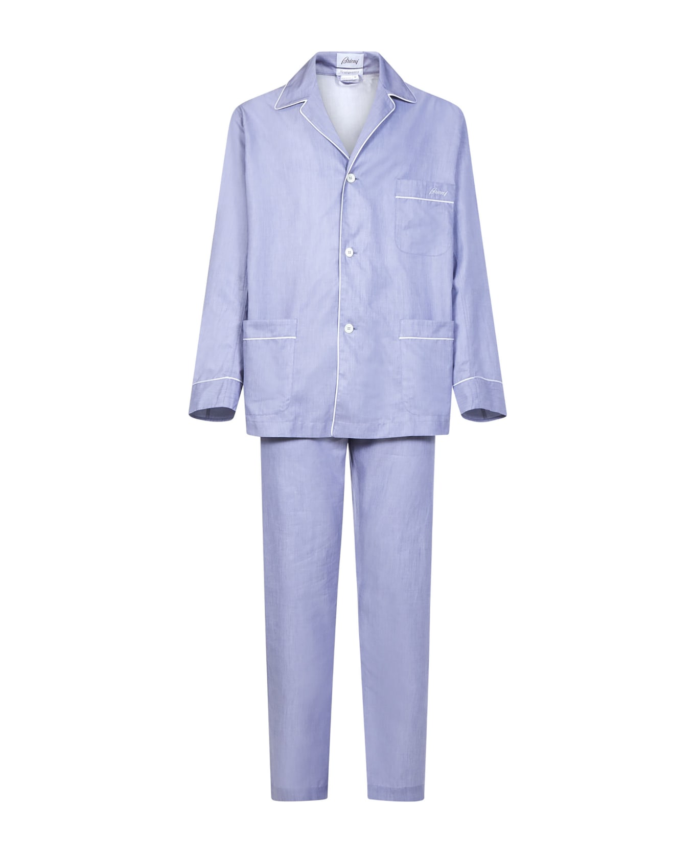 Shirt: Front closure with buttons; Rever collar; Long sleeves; Two patch pockets on the front, one patch pocket on the chest; Contrast piping; White Brioni logo embroidered on the pocket