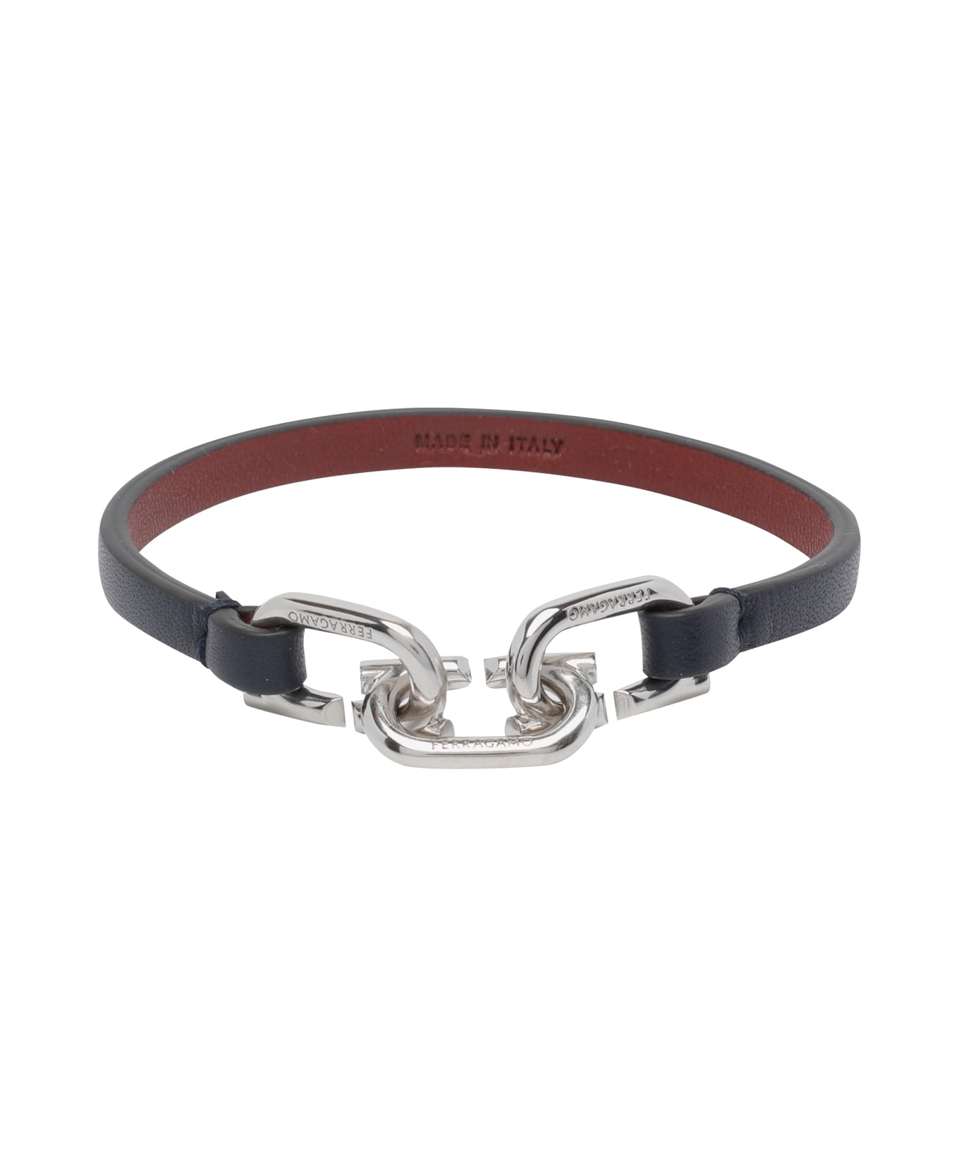 Ferragamo navy blue Gancini bracelet, Gancini closure Composition: 50% Brass, 50% Calf Leather